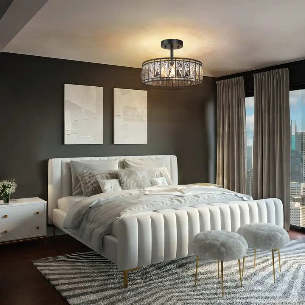 Shining and stunning in your room. This drum chandelier is crafted with gorgeous crystal pieces and superior metal, which shows timeless elegance and modern low-key luxury, perfectly blending into your house in modern luxury style. After being refracted by the crystal glass covers, the fabulous modern empire fixture will form a stunning, dazzling, and colorful lighting effect. This fixture is a glamorous addition to modern spaces like your bedrooms, hallways, entryway, and kitchen island.Features: