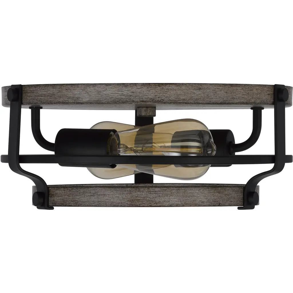 Clarita 2 Light 13 Inch Drifted Wood And Black Semi Flush Mount Ceiling Light