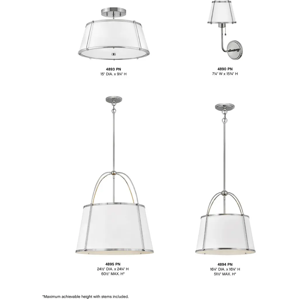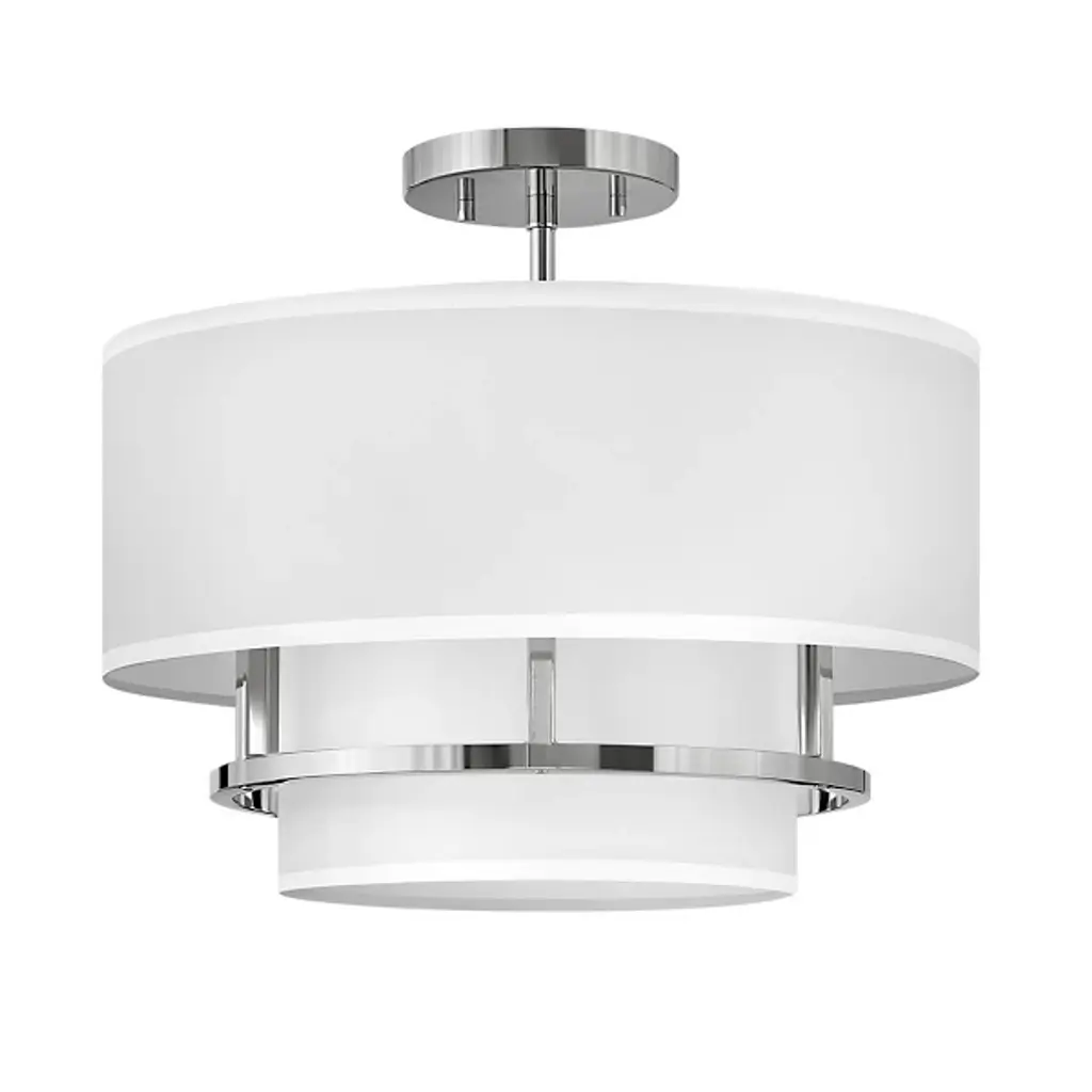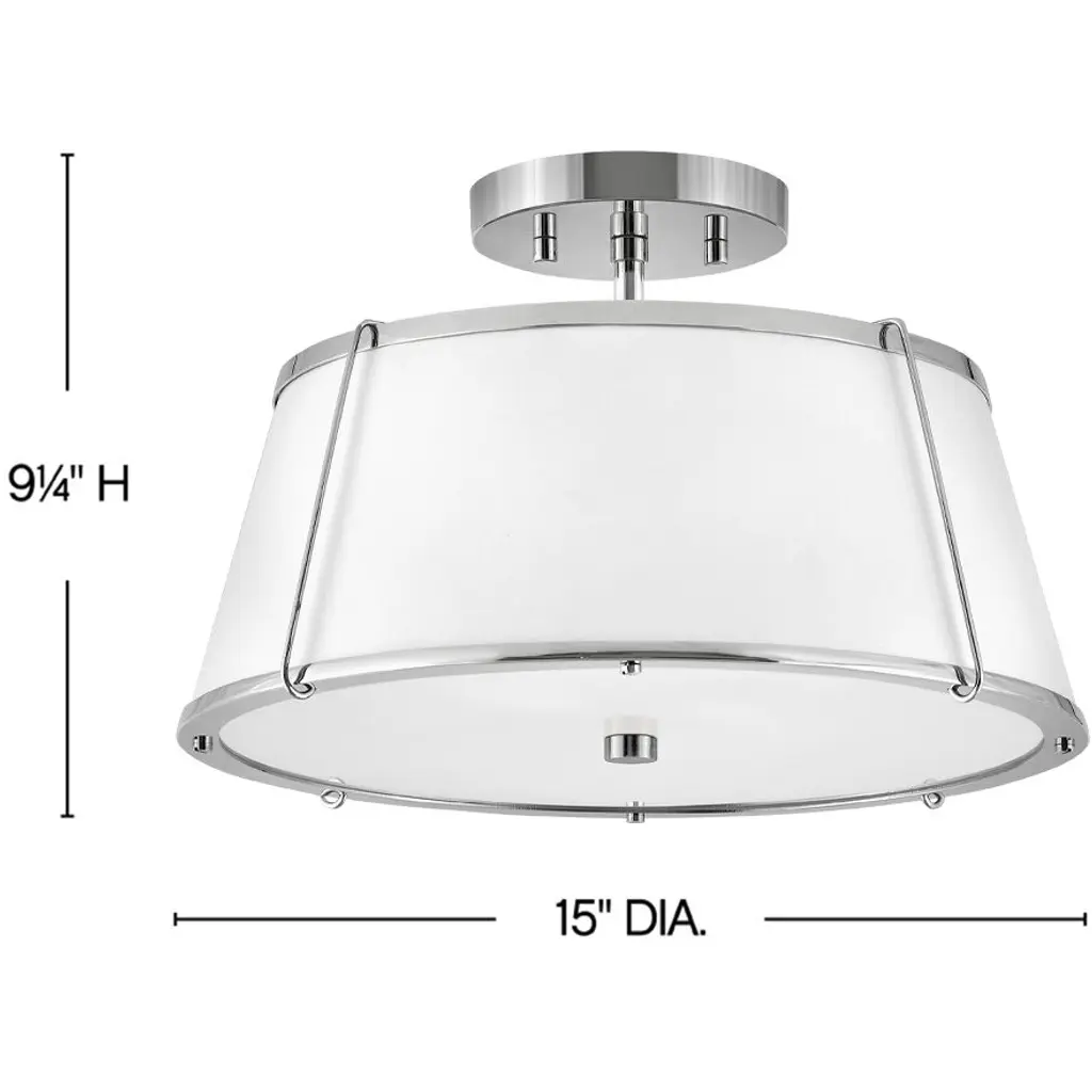 Clarke 2 Light 15 Inch Polished Nickel With Matte White Indoor Semi-Flush Mount Ceiling Light