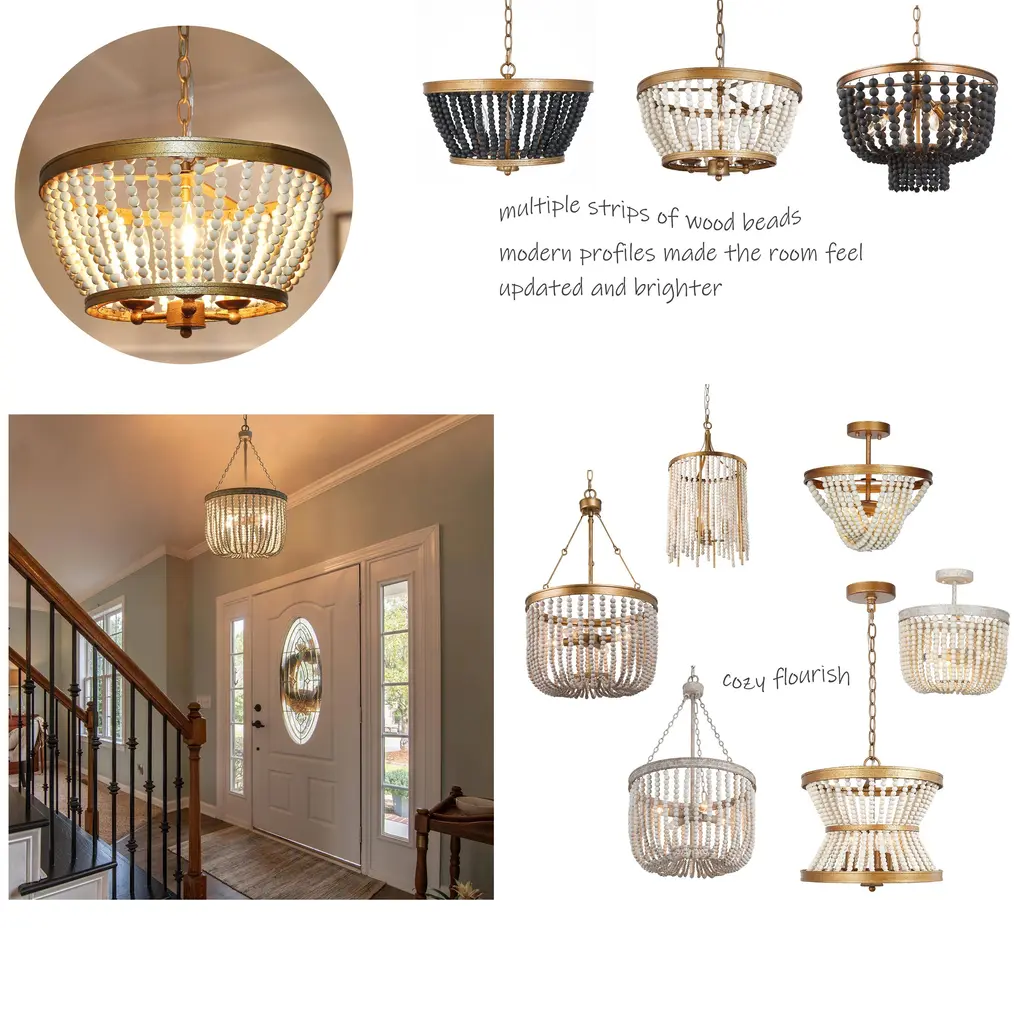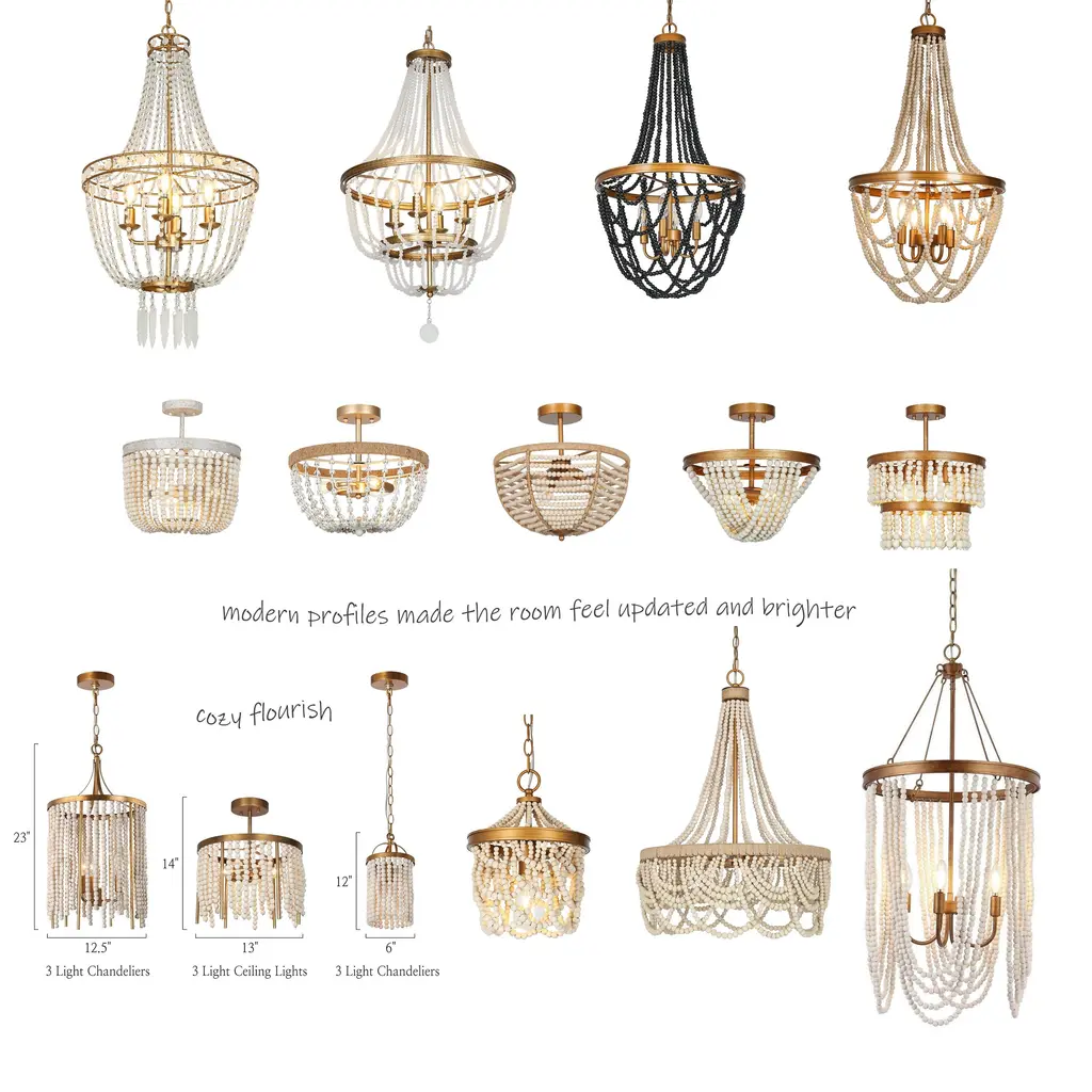 You would love the Wood Beaded Gold handcrafted Chandelier from the Coasa Collection! This chandelier features handmade wooden beads that are strung together to create a warm and comfortable lighting atmosphere. Its blend of bohemian and modern elements creates a vintage refinement, perfect for any space. With a rustic aesthetic and subtle luxury, this chandelier is sure to enhance the ambiance of your home. Features:Dimension: