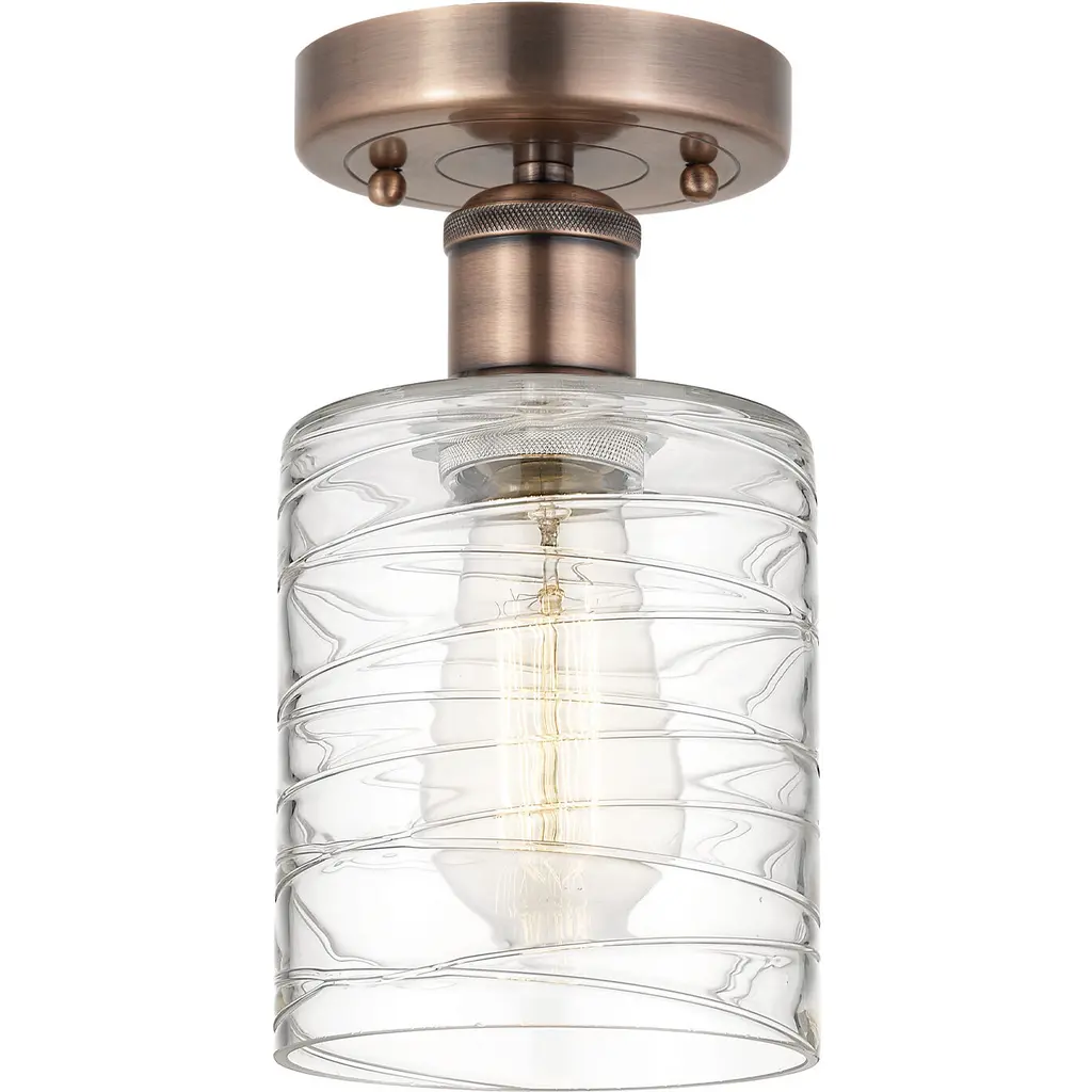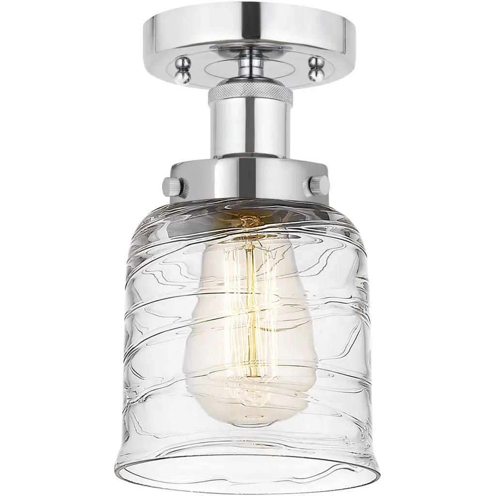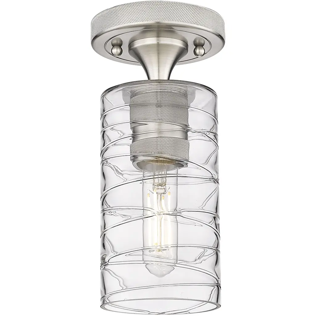 Cobbleskill - 1 Light 5" Semi-Flush Mount - Polished Nickel Finish - Deco Swirl Glass Shade