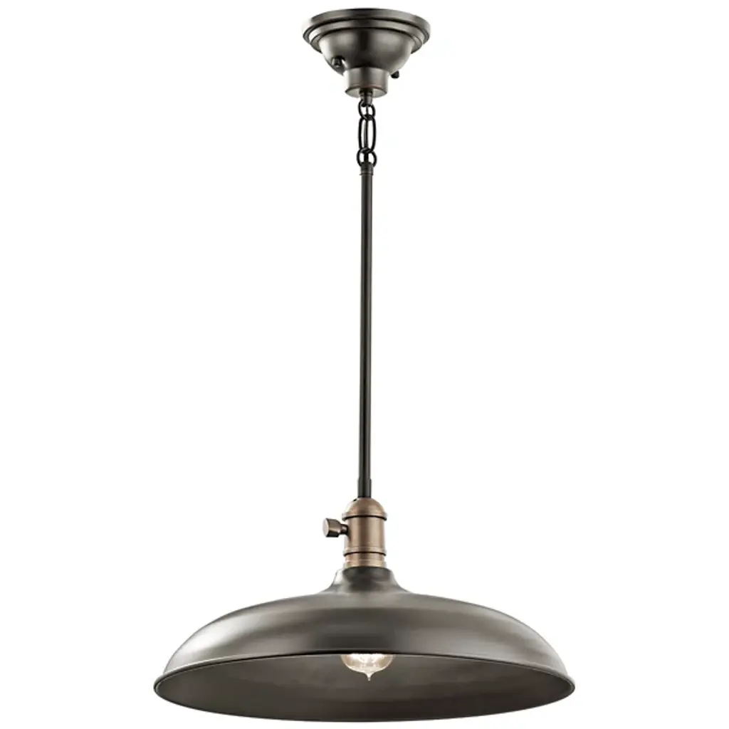 Travel back in time with the vintage industrial Kichler Cobson Pendant/Semi-Flushmount/Wall Sconce, a convertible fixture that revives the classic design for the 21st century. Made from metal for extra strength and durability, the Cobson showcases a timeless wide bell form ubiquitous in the Industrial Age. Comes with a functional paddle switch like the original model. Hang as a pendant, or remove the stem for a semi-flushmount.