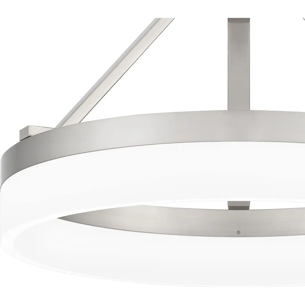 Sleek and striking, the minimalist Cohen series hypnotizes with a halo-like ring of glowing LED light. Choose from a variety of style options from flush mount to chandelier, all featuring an etched acrylic shade and your choice of either brushed nickel or oil rubbed bronze finish. The chandelier style is suspended from steel cord, reinforcing a modern aesthetic.