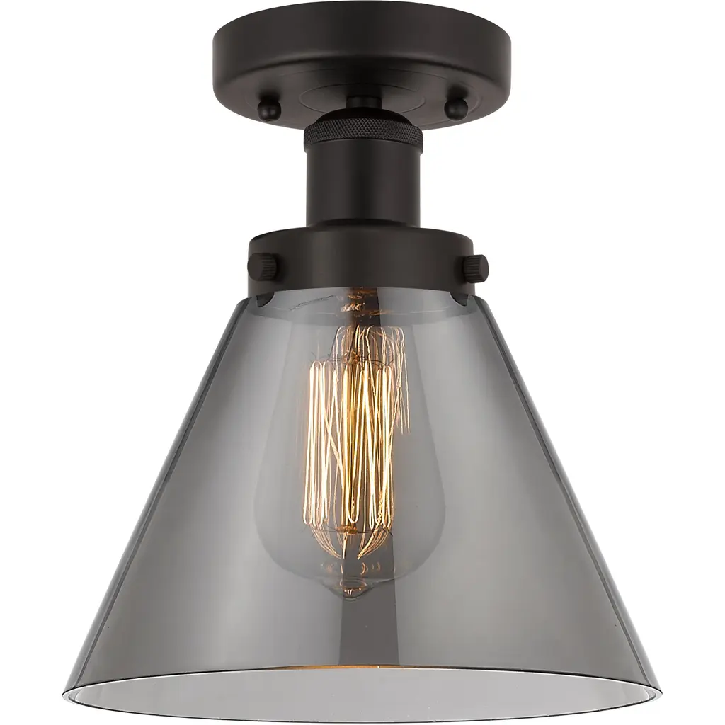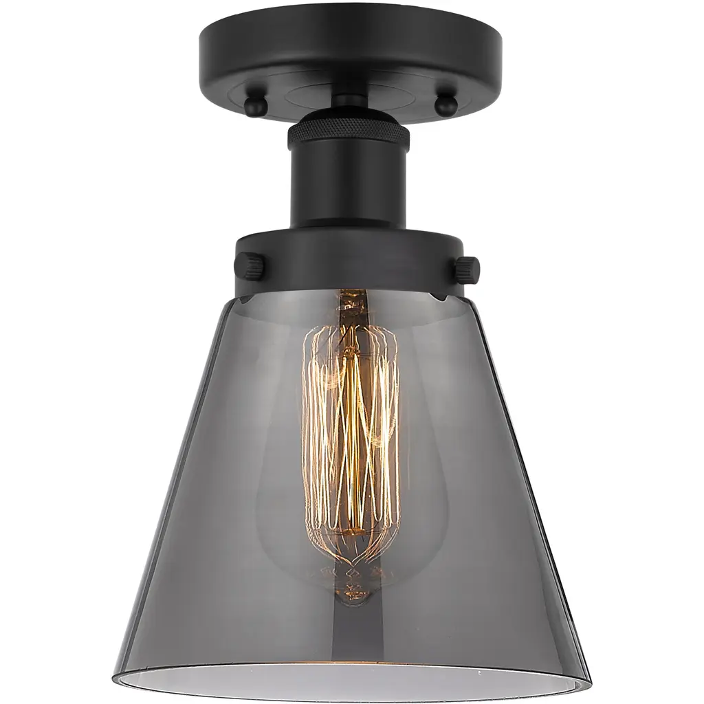 Cone 1 Light 7.75 Inch Matte Black Semi-Flush Mount Ceiling Light