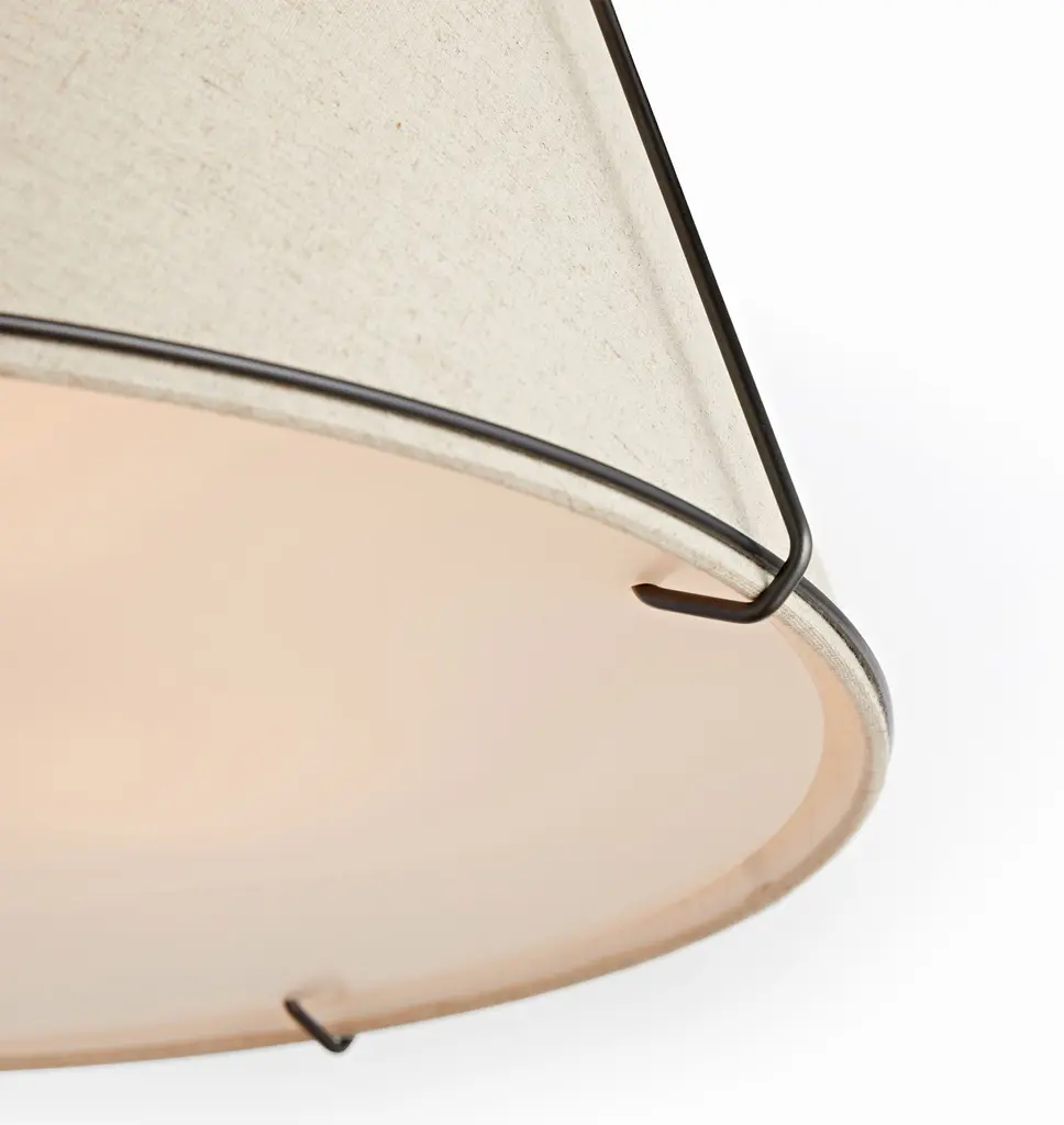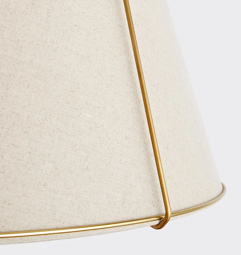 Our Conical Drum Fixture makes a big statement in spaces both large and small. Lofty lines and a linen shade add a casual, breezy note, balancing its size and making this light an ideal option for ambient lighting in any room. Available in two versatile sizes, this semi-flush style effectively optimizes spaces with lower ceilings and rooms with modest scale. Product Specifications Brass fixture, fabric shade Mildew-resistant linen shade Hardwired; professional installation recommended For indoor use (UL Rated Dry) Imported