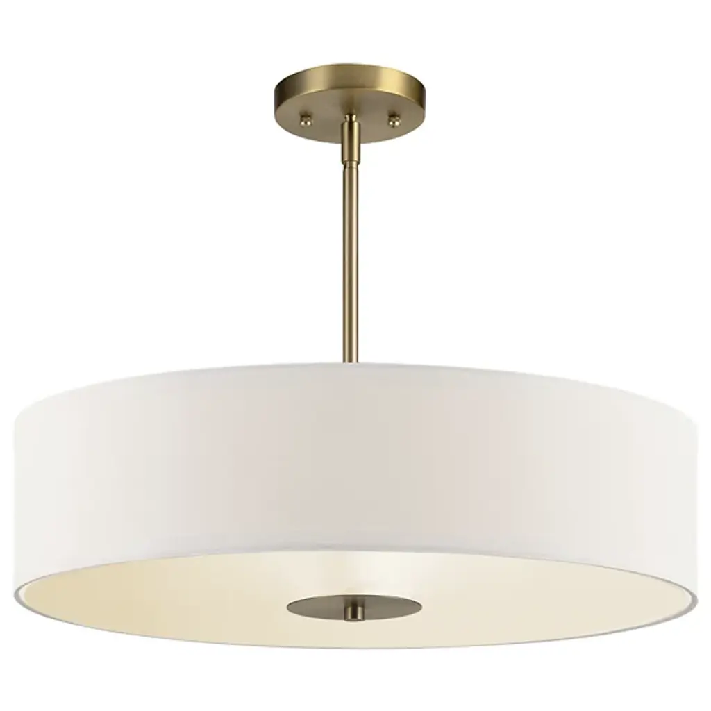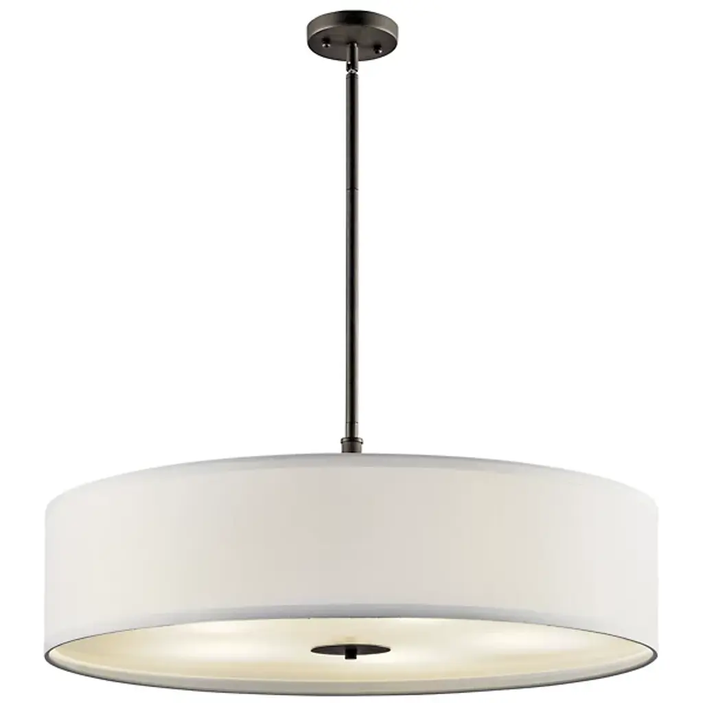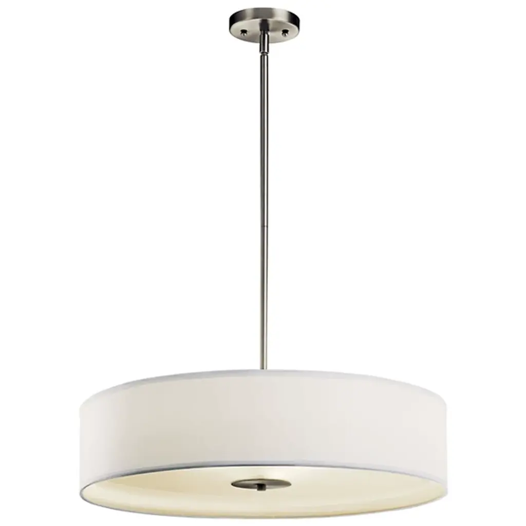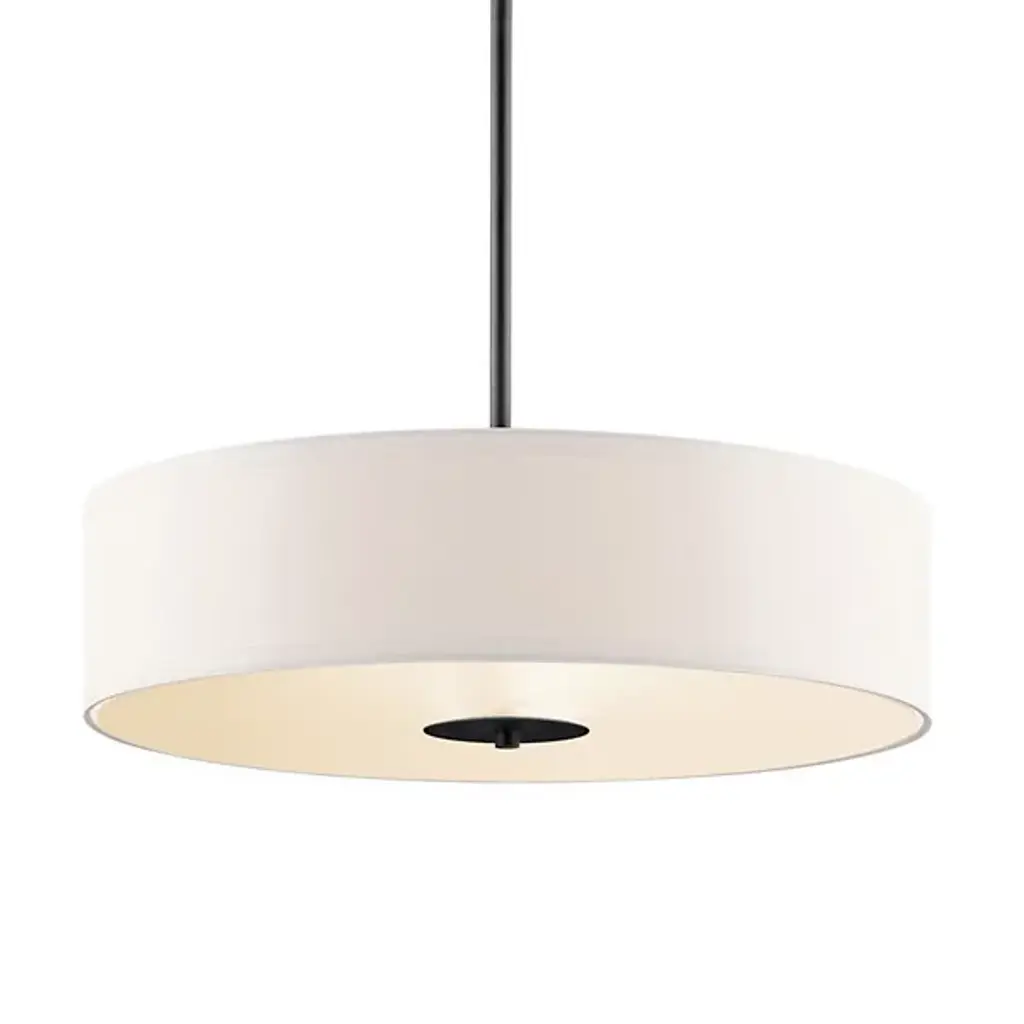 Hang as a Convertible Drum Pendant / Semi-Flushmount and enjoy flexible lighting in soft contemporary spaces. The Kichler Convertible Drum Pendant features a White Microfiber drum shade. The top of the drum is open and the bottom is capped with a Satin Etched glass diffuser. The slender drum is a minimalist look great for a number of interior design schemes.