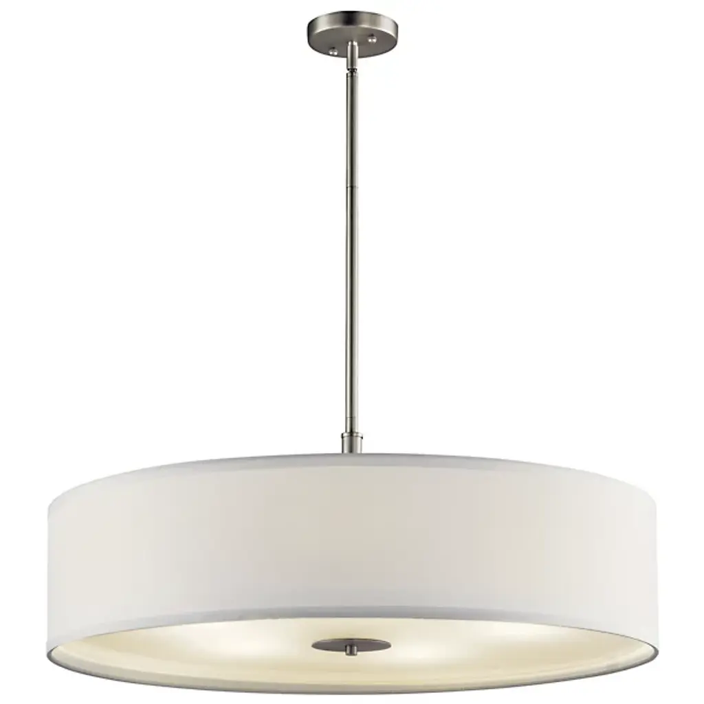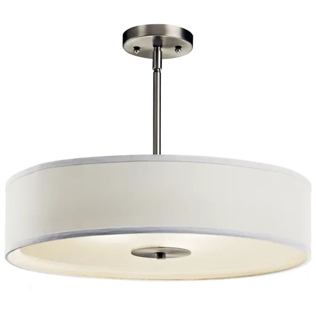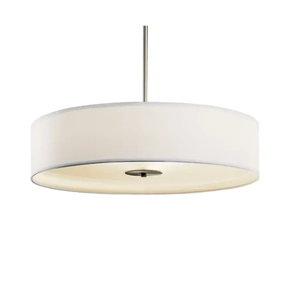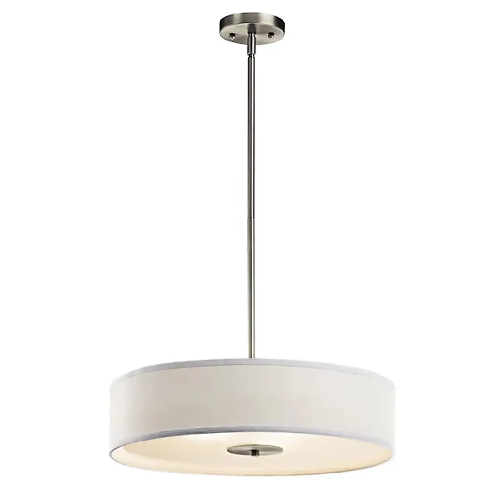 Hang as a Convertible Drum Pendant / Semi-Flushmount and enjoy flexible lighting in soft contemporary spaces. The Kichler Convertible Drum Pendant features a White Microfiber drum shade. The top of the drum is open and the bottom is capped with a Satin Etched glass diffuser. The slender drum is a minimalist look great for a number of interior design schemes.