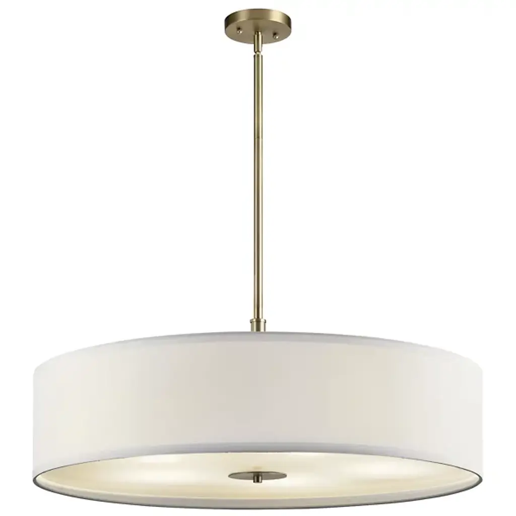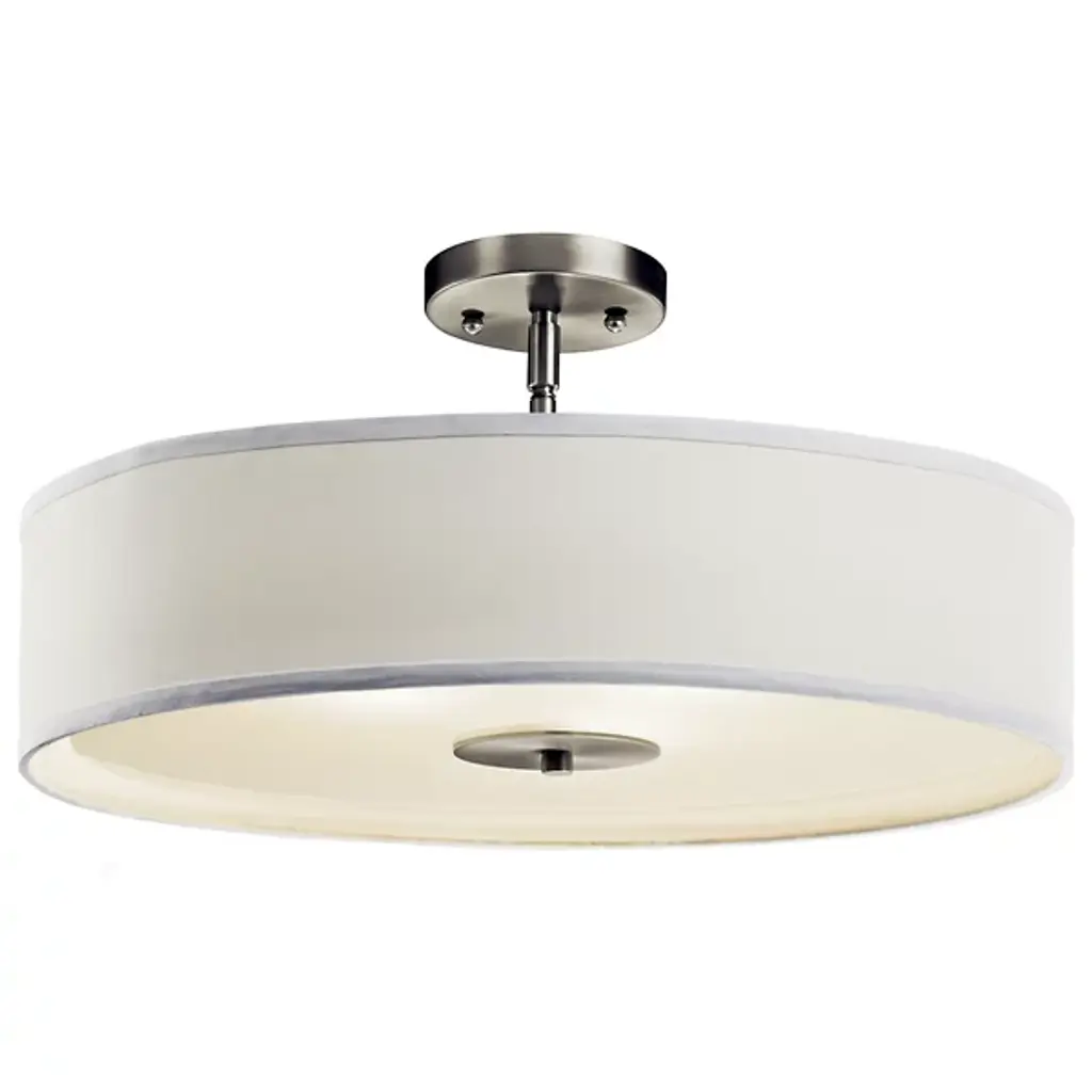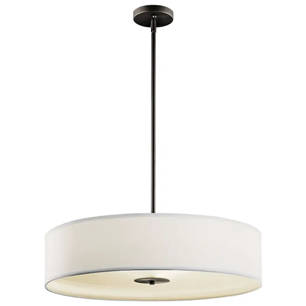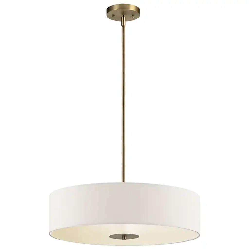 Hang as a Convertible Drum Pendant / Semi-Flushmount and enjoy flexible lighting in soft contemporary spaces. The Kichler Convertible Drum Pendant features a White Microfiber drum shade. The top of the drum is open and the bottom is capped with a Satin Etched glass diffuser. The slender drum is a minimalist look great for a number of interior design schemes.