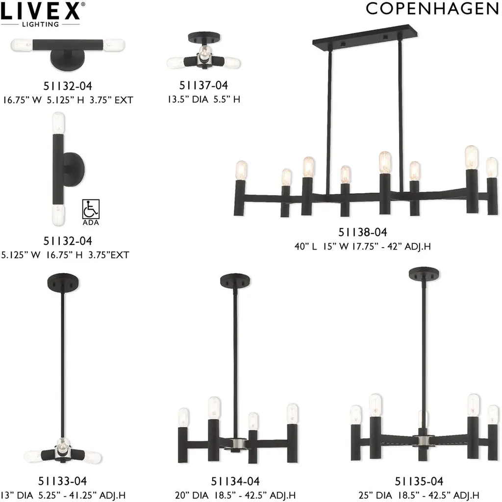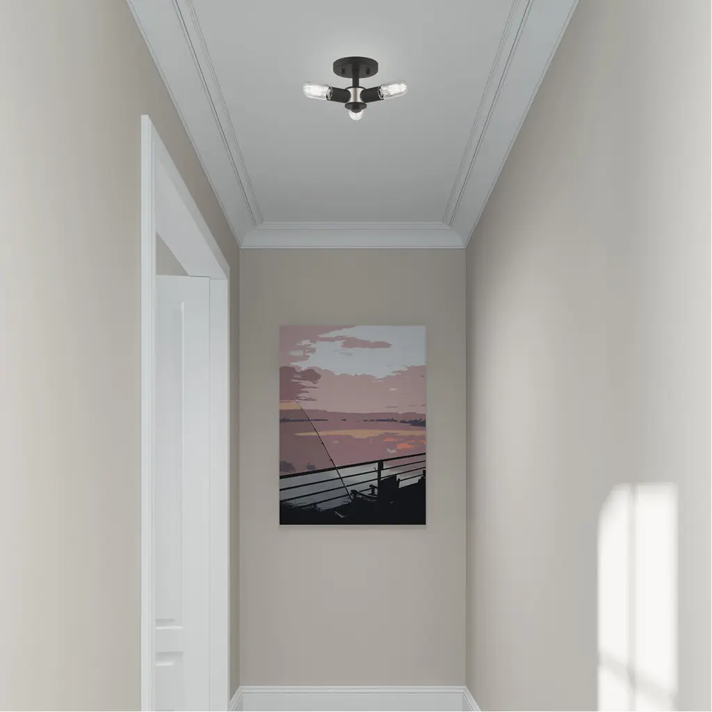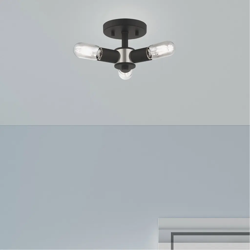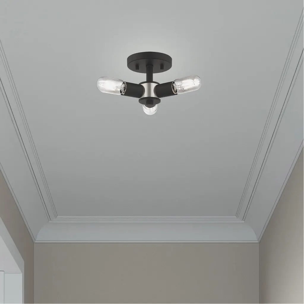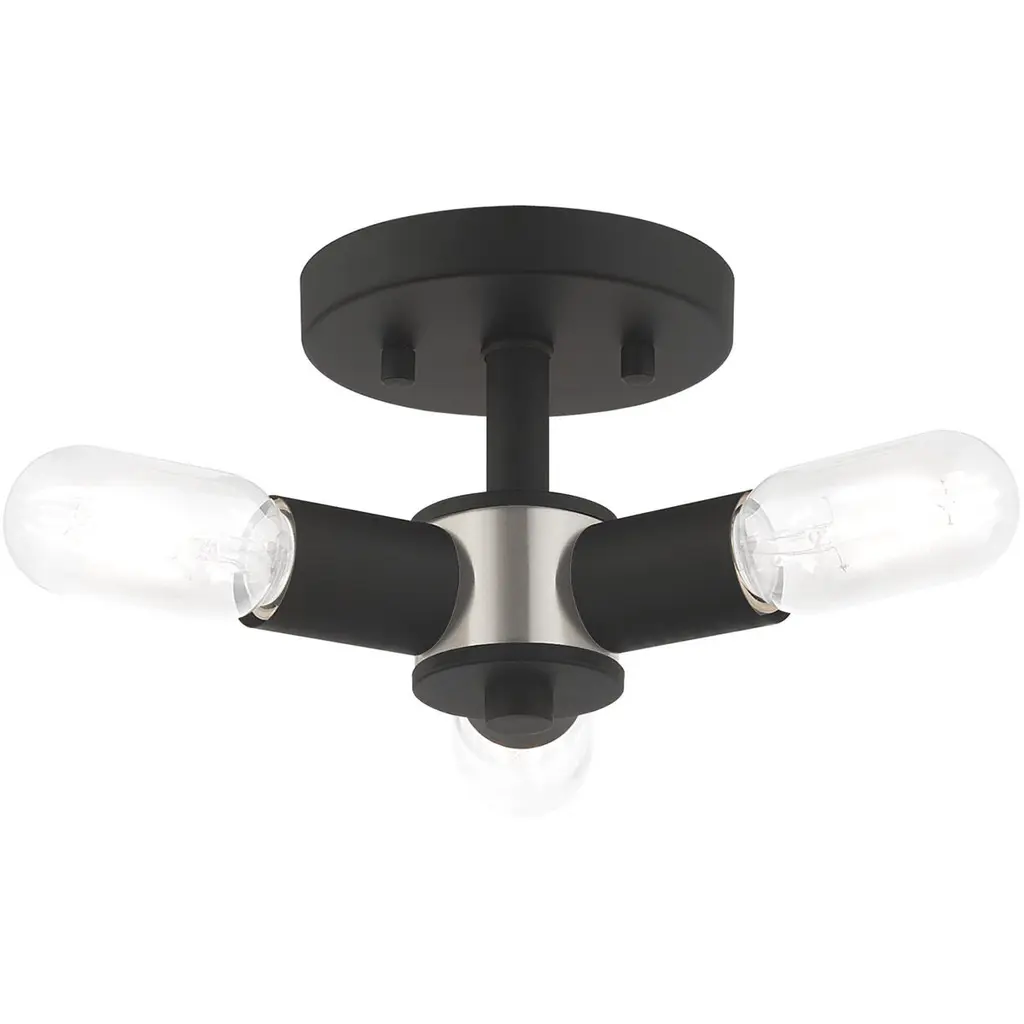 Copenhagen 3 Light 14 Inch Black Semi-Flush Mount Ceiling Light