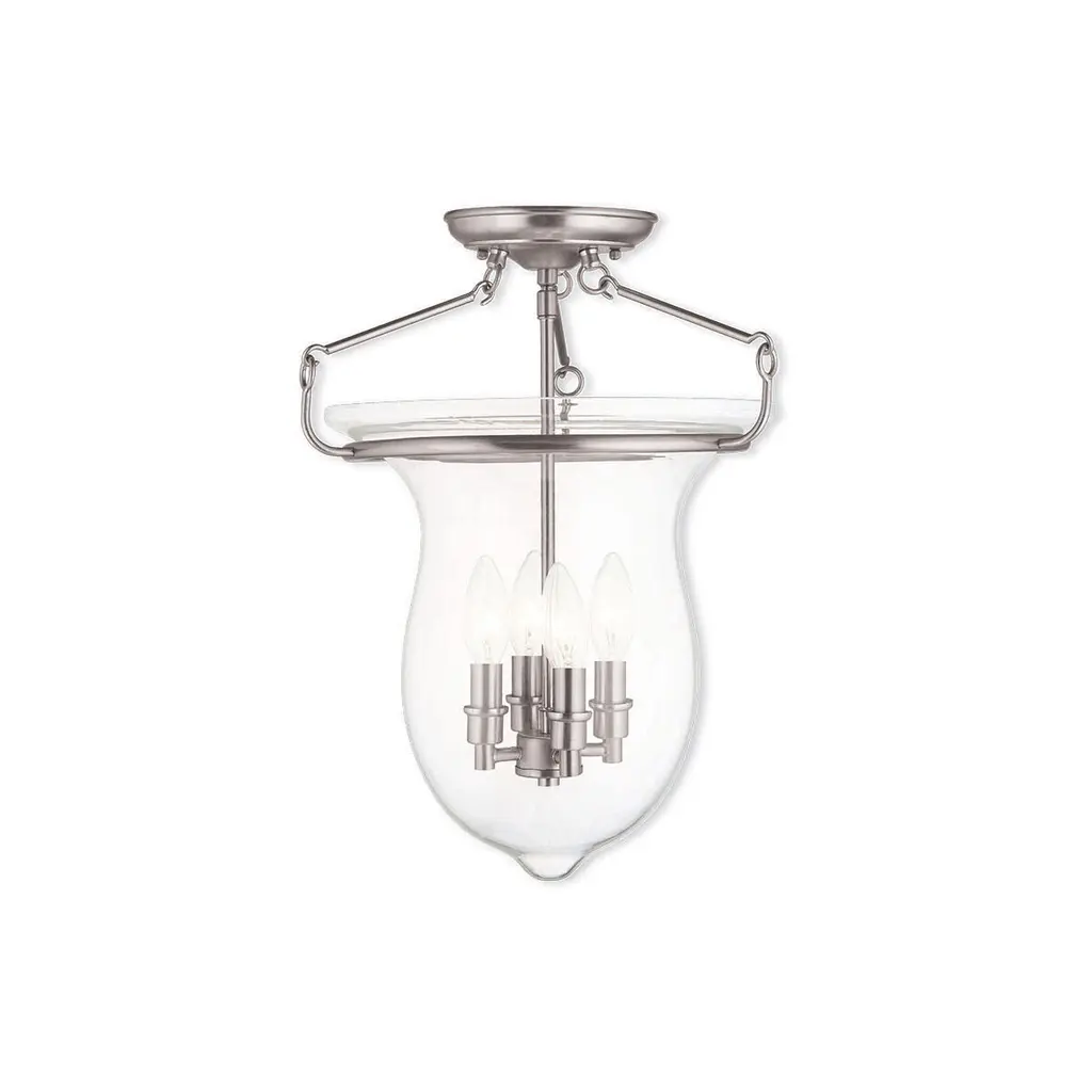 Designed to evoke a classically elegant aesthetic, this semi-flush bell lantern has a clear glass shade, revealing three candelabra lights within. Hardwired.Lighting adds texture and atmosphere to any space; it's the visual punctuation that defines a room. Crafted from authentic, time-honored materials and topped with beautifully coordinated shades, Visual Comfort’s illuminating designs masterfully combine sculpture, mechanics, touch and sight.