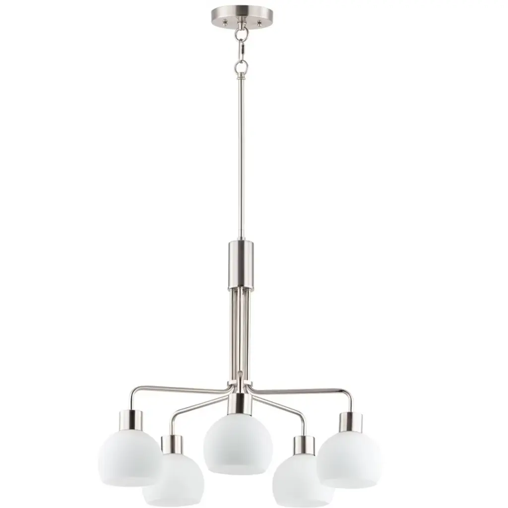 The Simple Lux Lighting Collection by Craftmade features brilliant dimmable LED light illuminating the frosted glass shades of this contemporary collection of 16", 20" and 27" diameter chandeliers and 12" diameter semi flushmount fixture. Sleek cylinders with frost LED caps alternating up and down surround the round frame suspended from a round canopy by a combination of rod and adjustable height chain. Damp Rated LED - Color Temp: 3K (Dimmable), CRI: 9 Frosted Acrylic Dimmable LED, 3K, CRI 9
