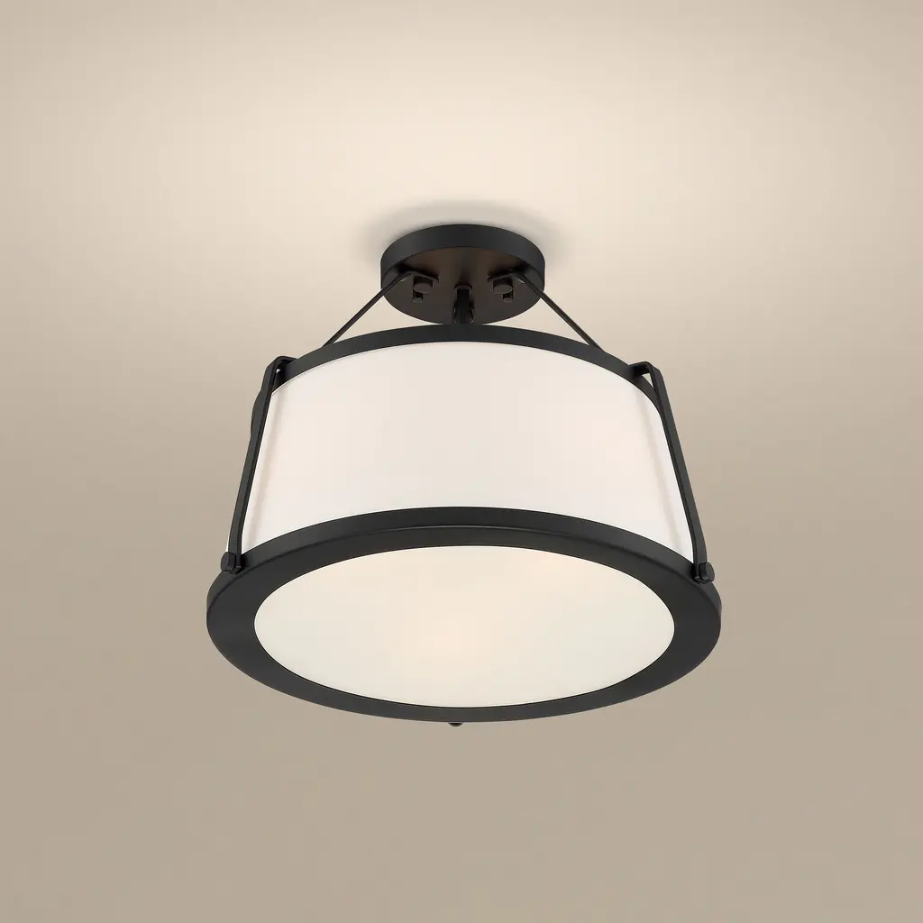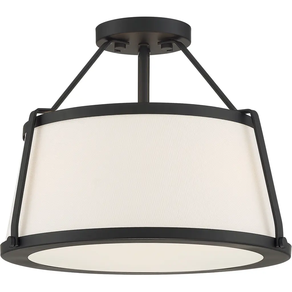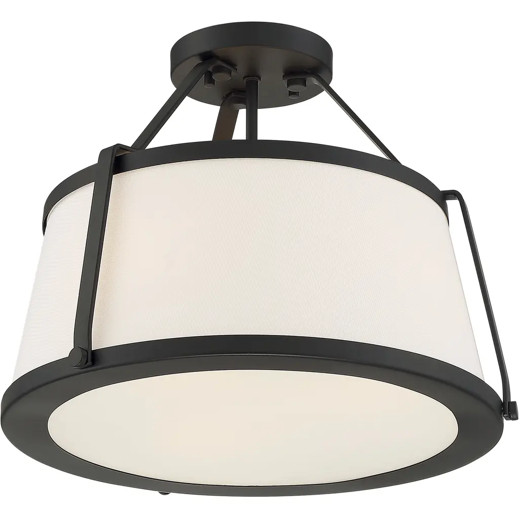 Cutty 3 Light Semi-Flush with Fabric Shade Matte Black Finish