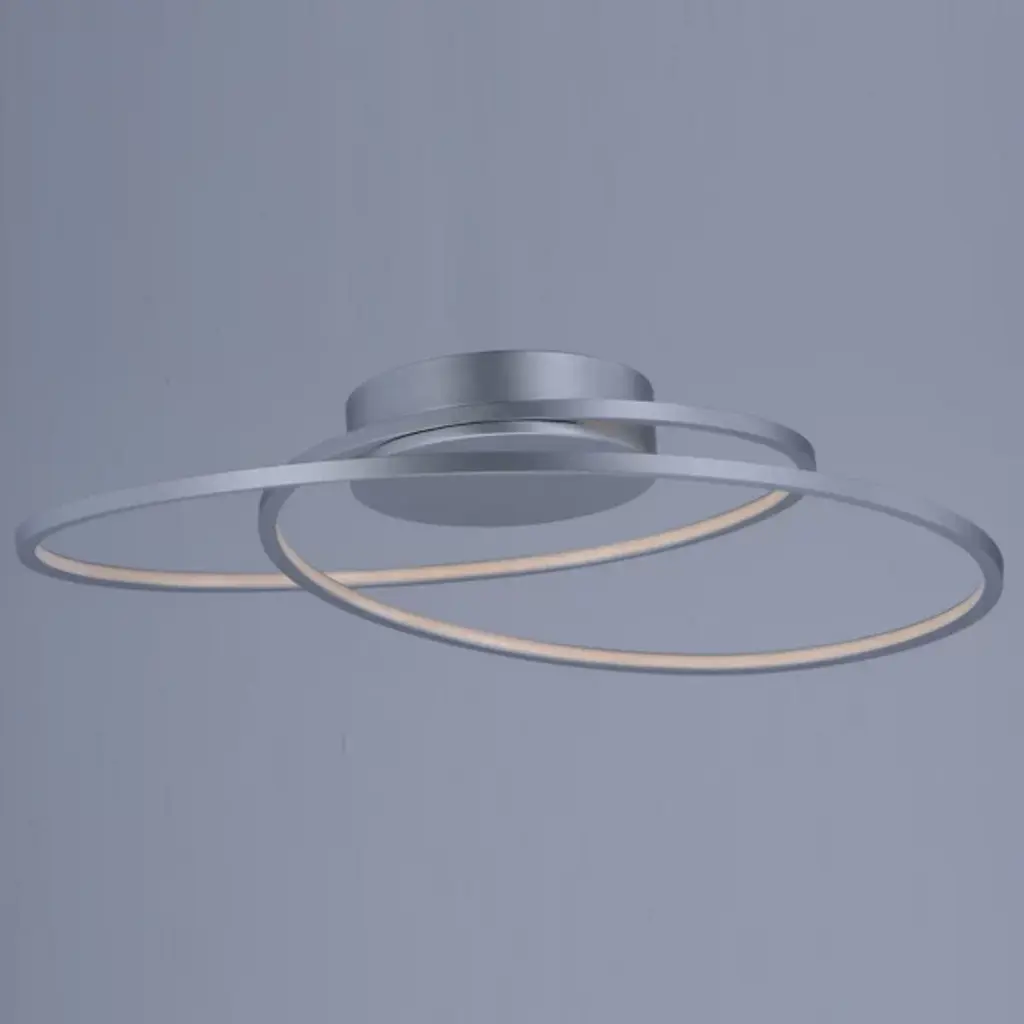 The ET2 Lighting Cycle LED Semi-Flushmount intersects a continuous spiral of Aluminum and Acrylic with a round ceiling canopy. This fluid design brings significant style to the flushmount category. It will deploy that style and significant light output to your chosen space. Dimmable with a standard TRIAC or CL dimmer (not included).