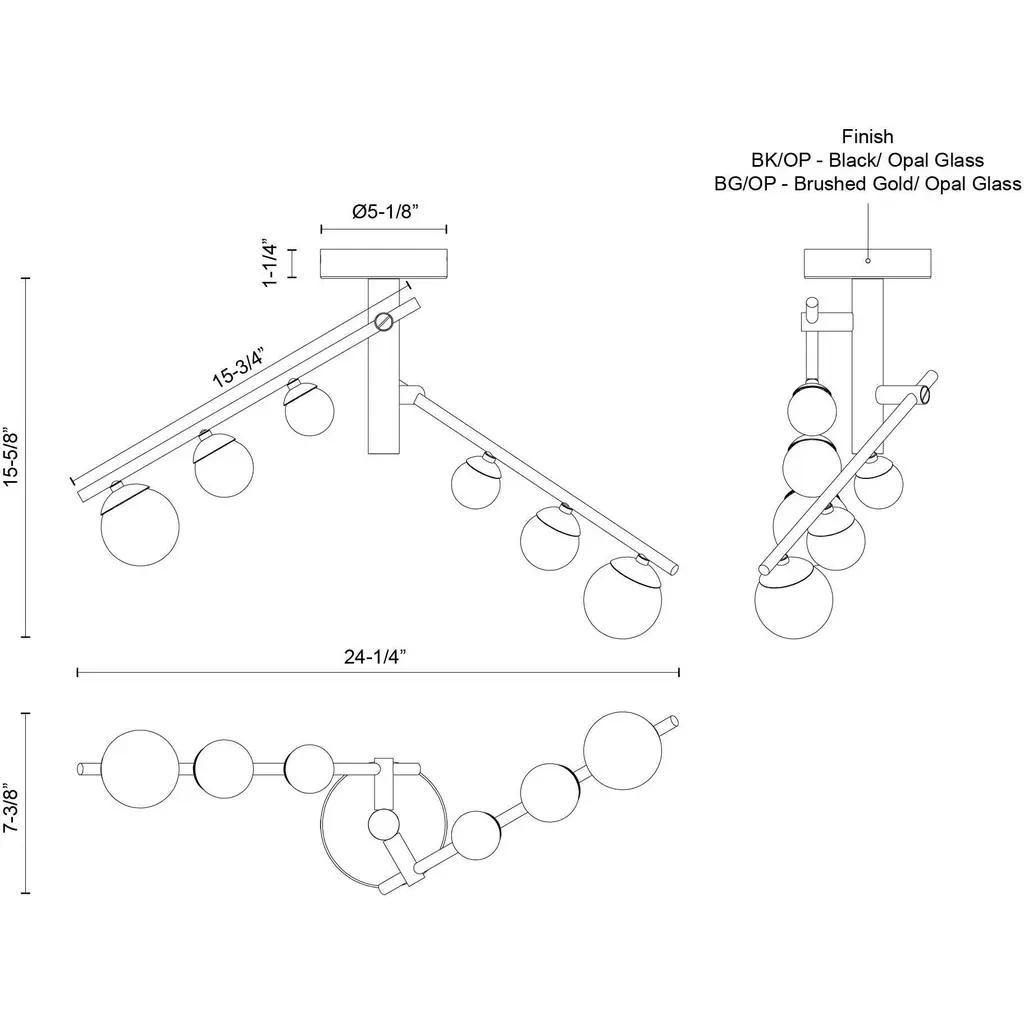 Cypress 2 Head Black/Opal Glass LED Semi-Flush