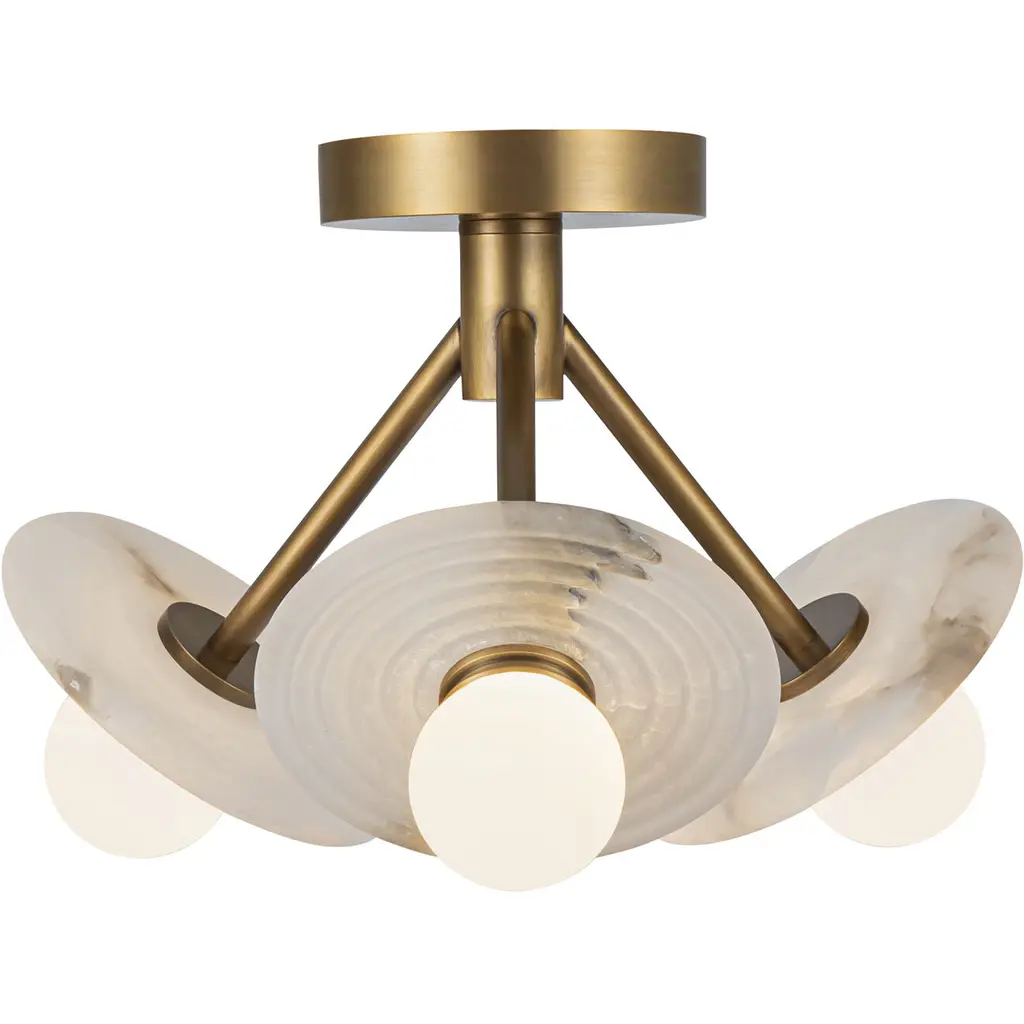 Elevate your space with the Dahlia LED Semi Flush Mount from Alora. Inspired by biophilia, this stunning piece features ribbed alabaster plates and opal glass illumination for a diffused, luxurious look. Each detail is crafted to stand the test of time, bringing a classically chic accent to your home. Highlights