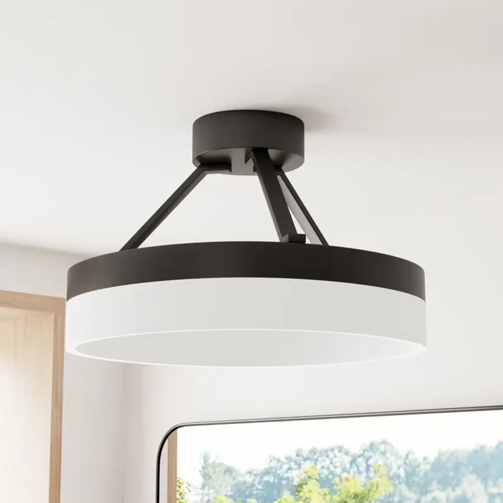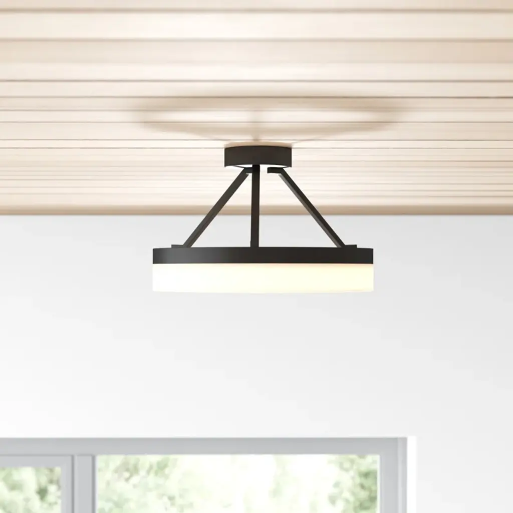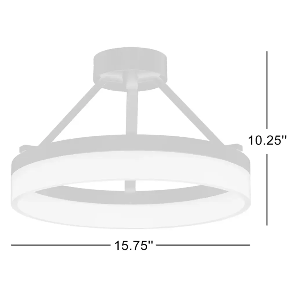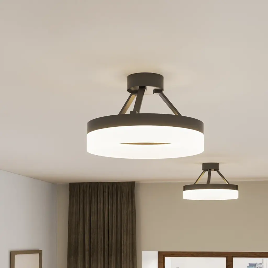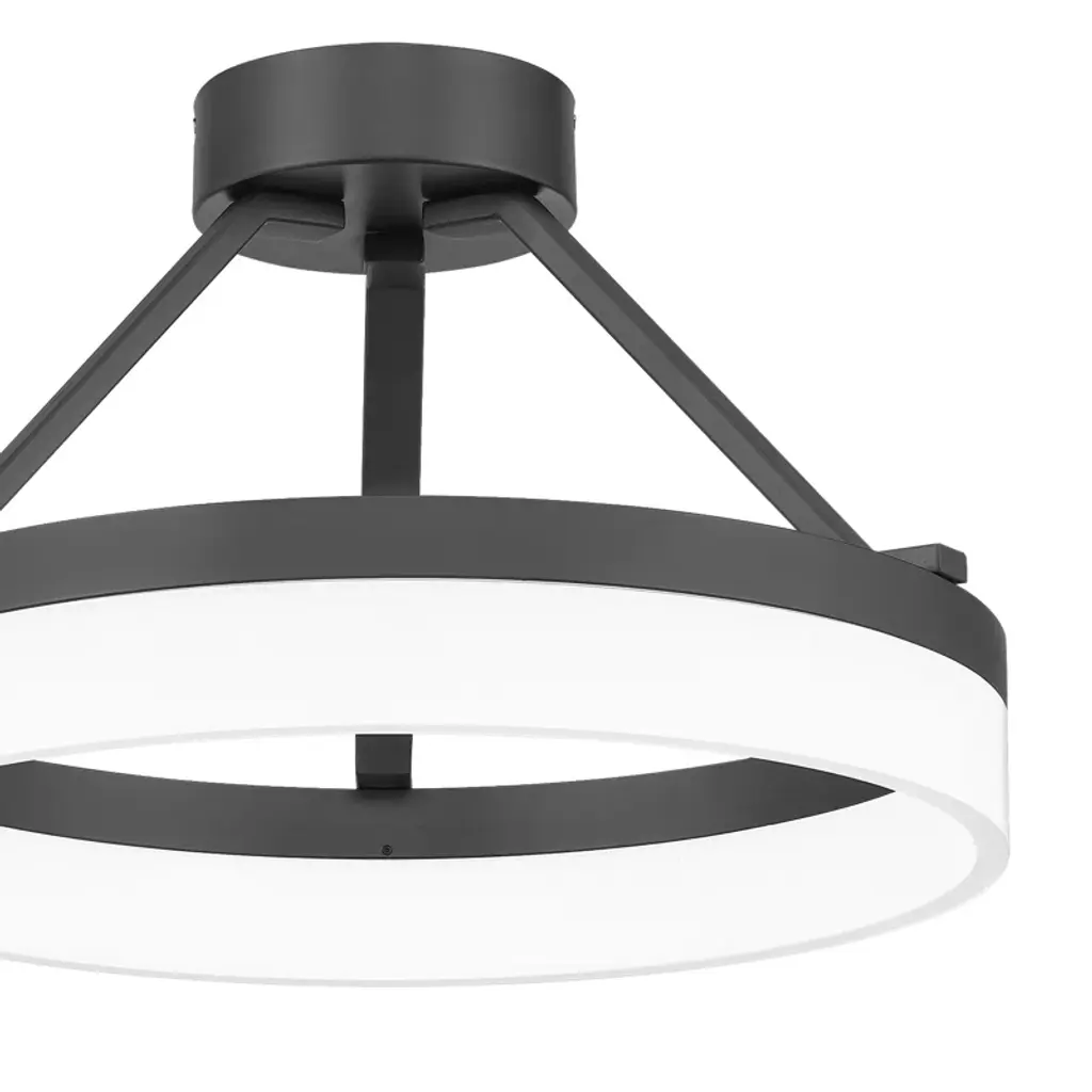 Circle of light. Sleek and striking, this minimalist semi-flush mount brightens your space with a halo-like ring of illumination. It’s built from steel with an oil-rubbed bronze finish and an etched white acrylic shade. Integrated LEDs mean you never have to change a bulb.