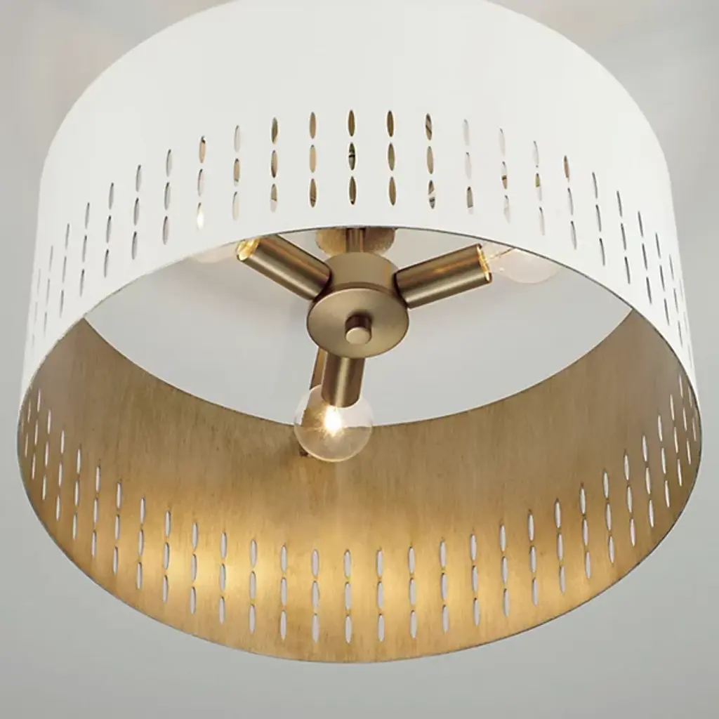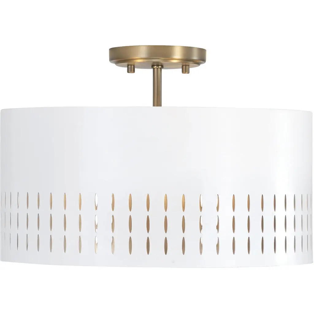 Mid-century style meets modern metal in the Dash Semi-Flushmount/Pendant by Capital Lighting. Striking cut-outs create character against the smooth framework. The interior of your semi-flushmount’s shade paints a warm backdrop, adding dimension for a standout, transitional style. The brightness level of your light fixture can be adjusted when you pair the Dash Semi-Flushmount with an ELV dimmer.