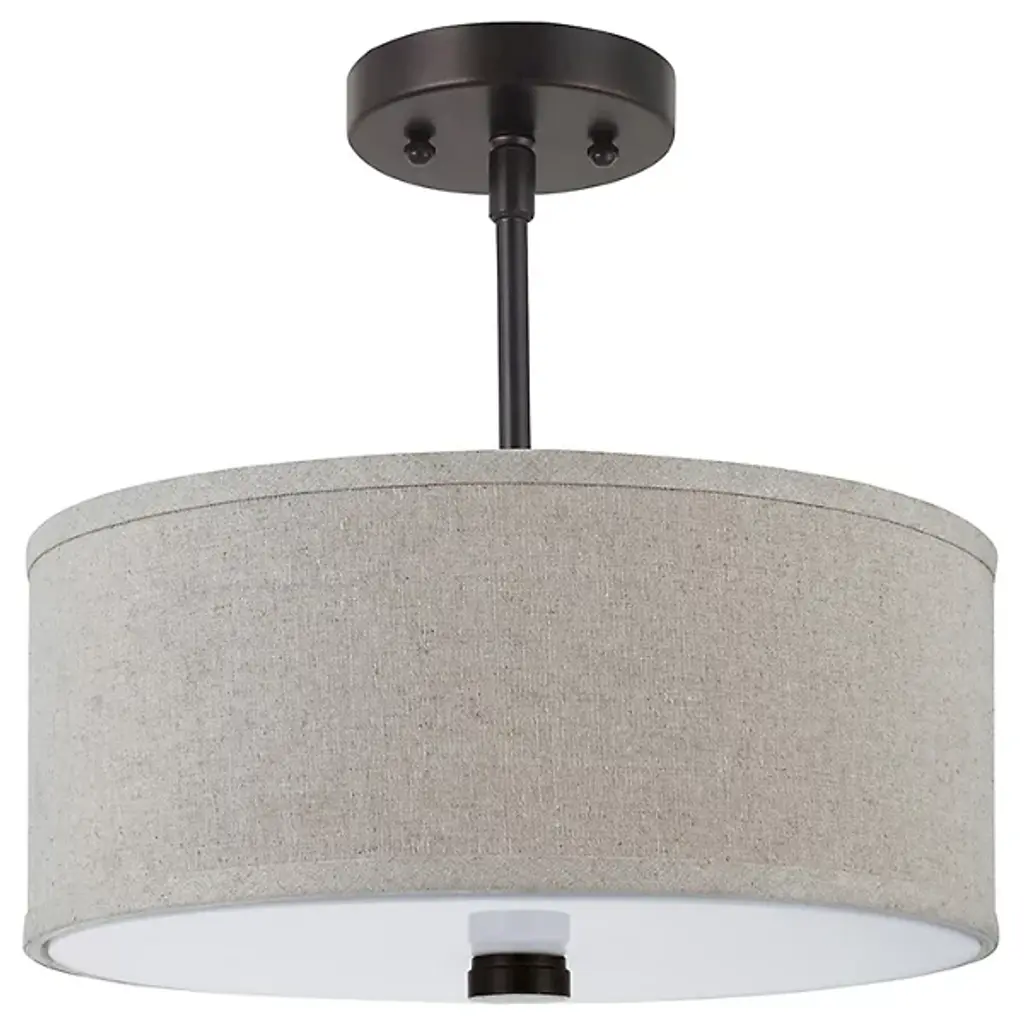 The Dayna Flush / Semi-Flush Convertible by Visual Comfort Studio, formerly known as Sea Gull Lighting, captures the essence of the classic drum shade design with its tailored aesthetic and welcoming ambiance. Its nostalgic silhouette features a sleek, fabric shade and a smooth acrylic diffuser that is held in place by a decorative metal finial. Once lit, a series of internal sources radiate through the shade and the diffuser, offering a warm, glare-free coverage of the surrounding space.