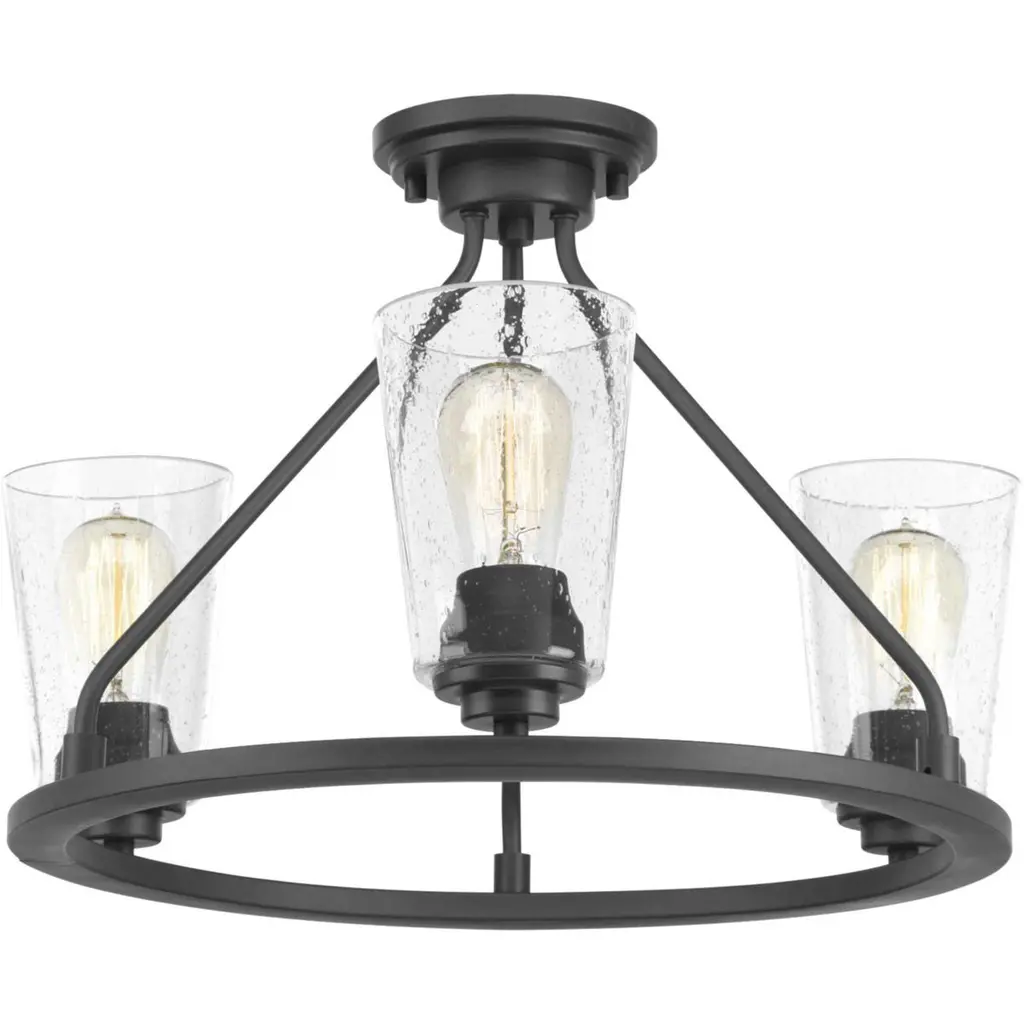 A new category of vintage modern fixtures takes center stage with this semi-flush, convertible fixture from one of our Design Series collections. Delicate details in a Graphite finish, create statement making focal pieces for a variety of interiors. Debut provides a fitting stage to feature nostalgic, vintage lamps. Glass accessory shades available in clear or frosted seeded finishes (sold separately).