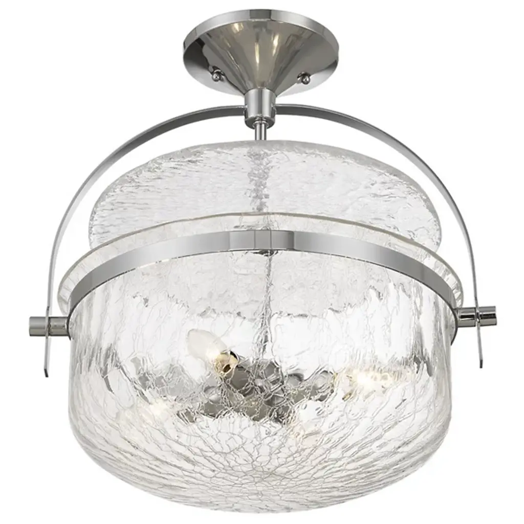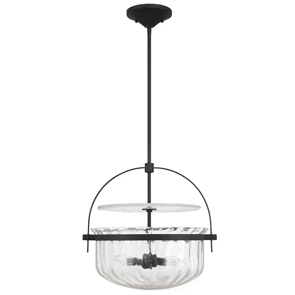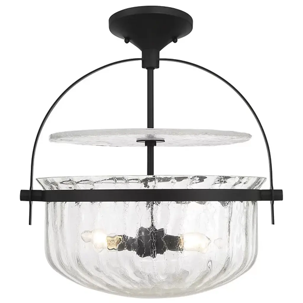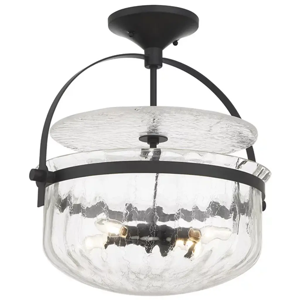 The Denmar Semi-Flushmount/Pendant from Savoy House resembles a Victorian snow globe. Its glass crackles with age and is suspended from a contemporary frame. The matte finish is like the night sky, cradling this luminous orb of captured starlight. As a flush mount, it hugs your ceiling like a mysterious cloud, ready to rain down soft illumination. Convert it to a pendant, and it becomes a suspended planet, a world of light hanging in your personal galaxy.