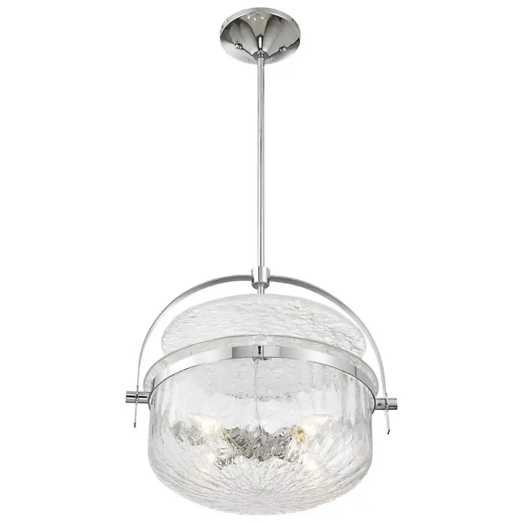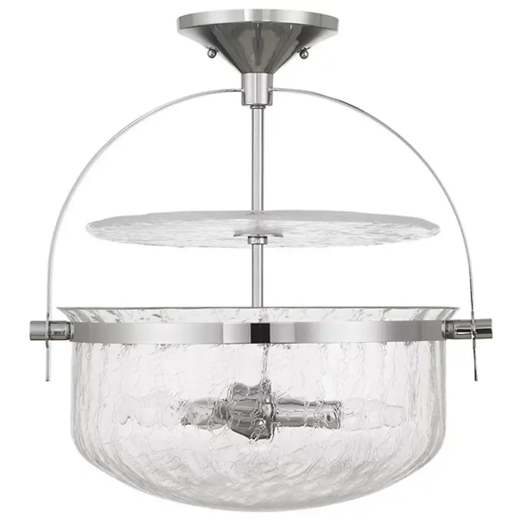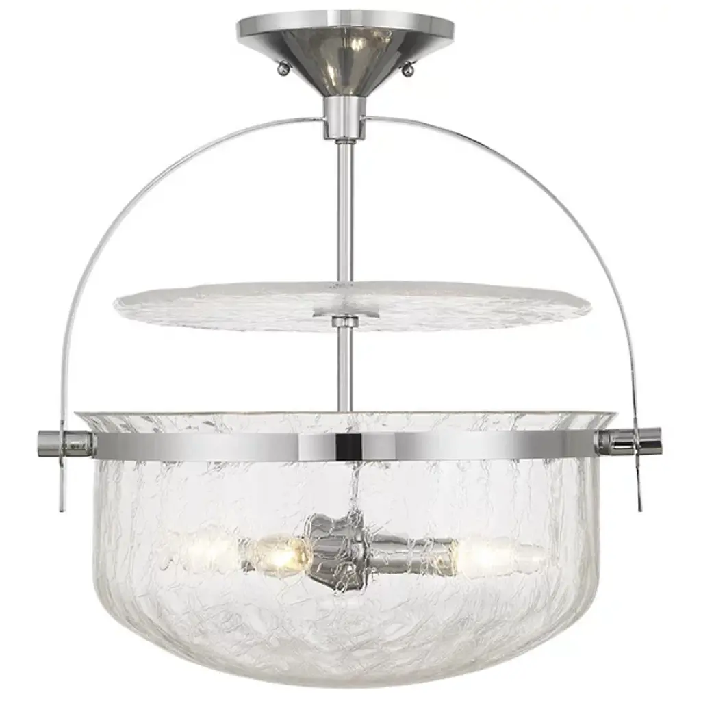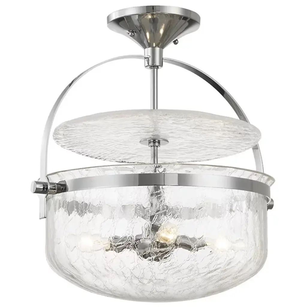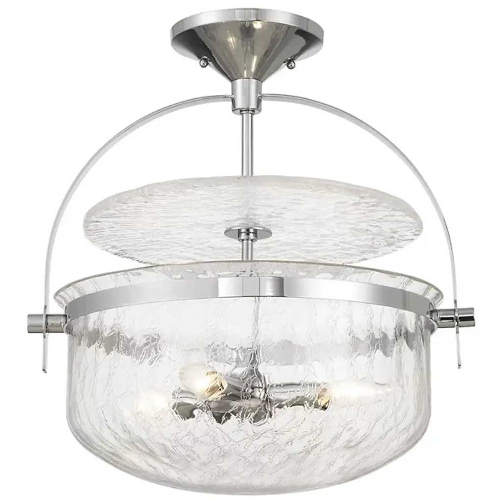 The Denmar Semi-Flushmount/Pendant from Savoy House resembles a Victorian snow globe. Its glass crackles with age and is suspended from a contemporary frame. The matte finish is like the night sky, cradling this luminous orb of captured starlight. As a flush mount, it hugs your ceiling like a mysterious cloud, ready to rain down soft illumination. Convert it to a pendant, and it becomes a suspended planet, a world of light hanging in your personal galaxy.