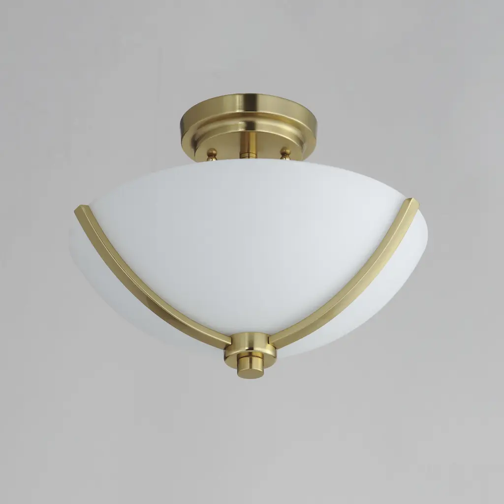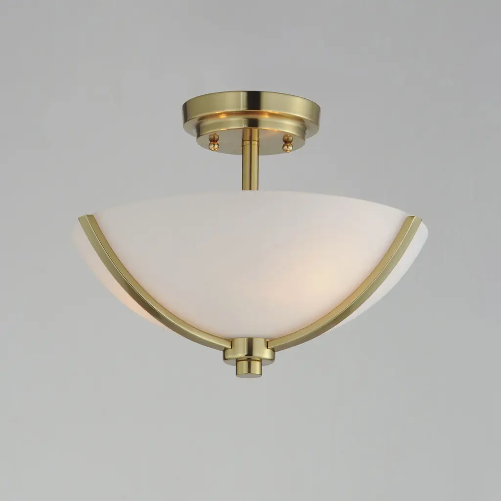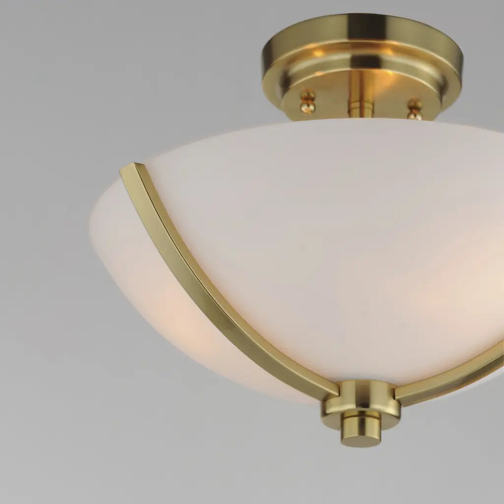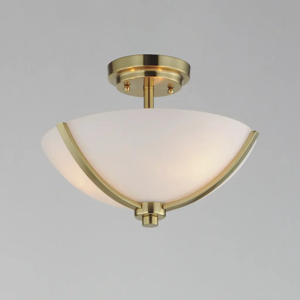 Deven 3 Light 14 Inch Satin Brass Semi-Flush Mount Ceiling Light