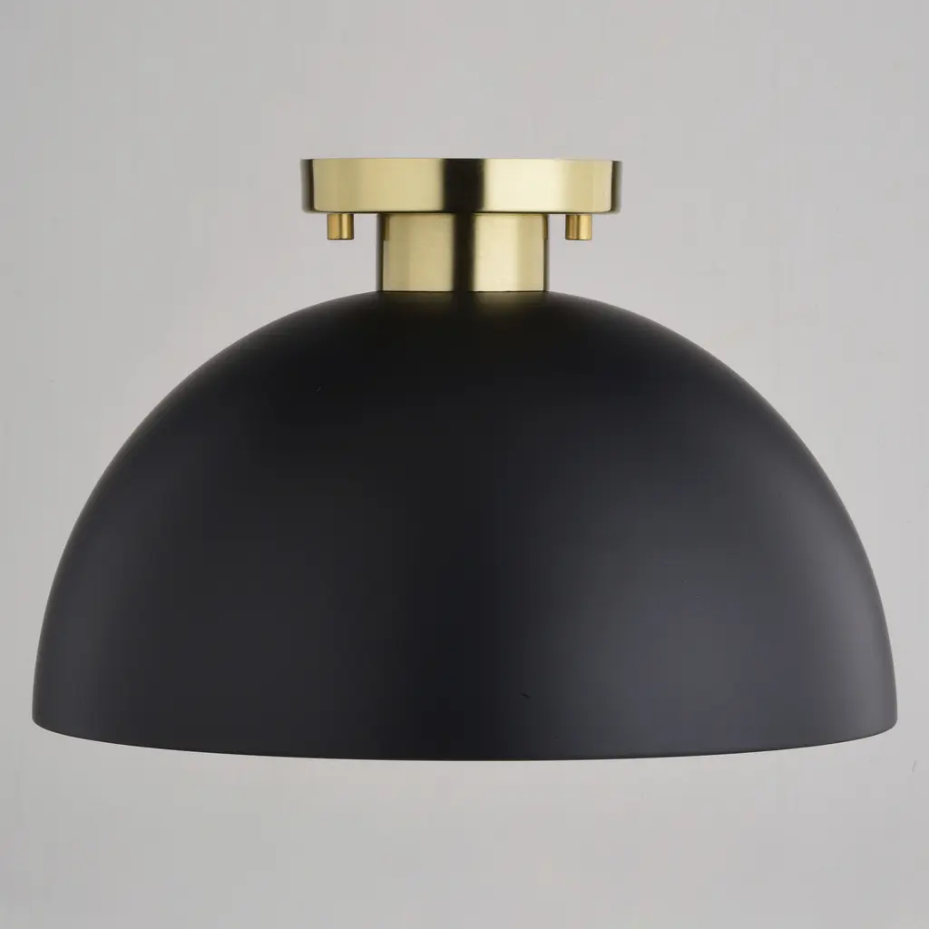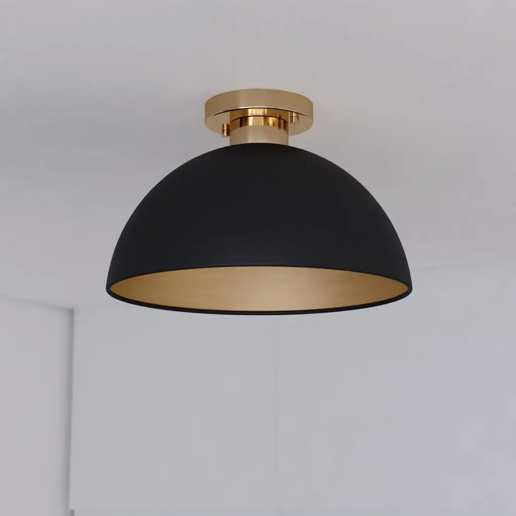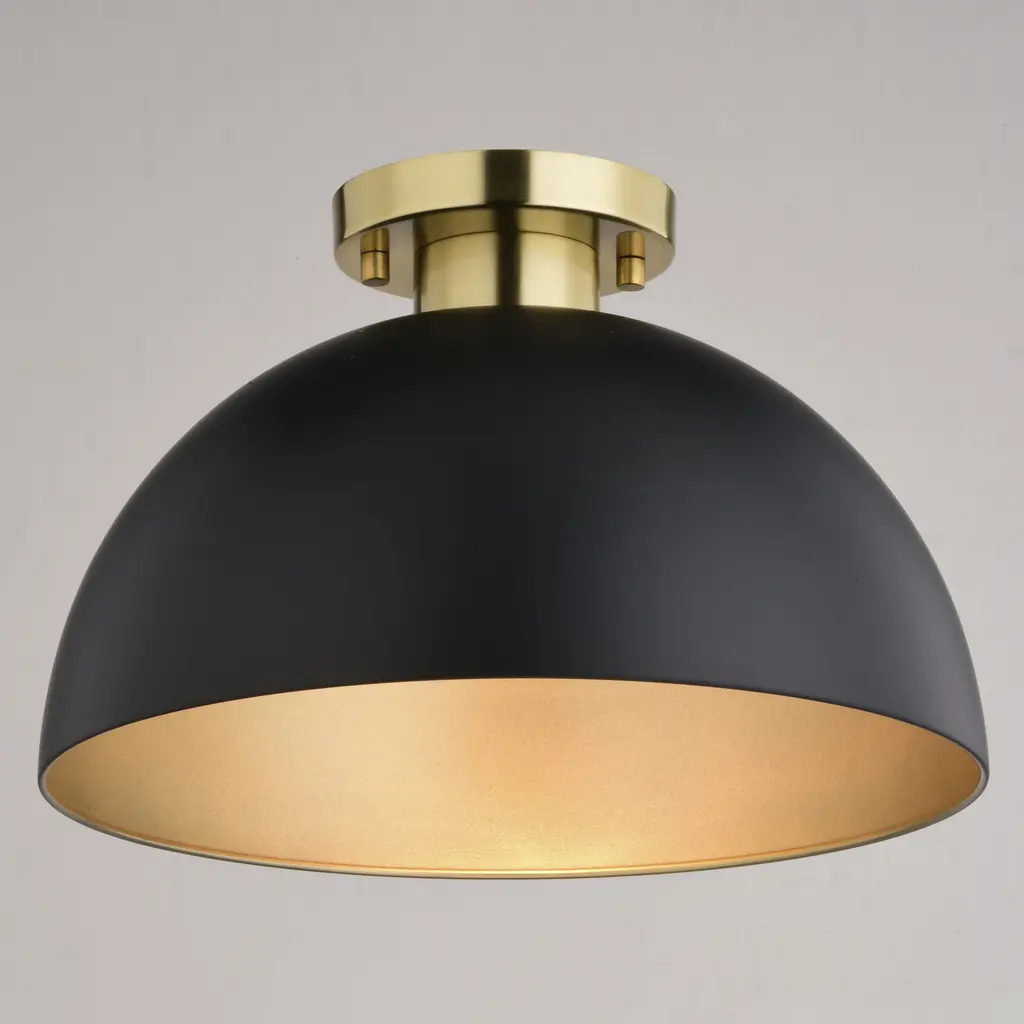 The Devon collection showcases a ceiling light that exudes elegance and simplicity at a great price point. The classic matte black dome shape is complemented beautifully by gold satin brass accents which adds a luxe touch to the overall design. The golden interior casts a soft glow of focused light and shows off the light's blend of modern minimalism and classic elegance. This ceiling light works well with many mid-century modern and contemporary decors whether its your kitchen, breakfast nook, home office or entryway.