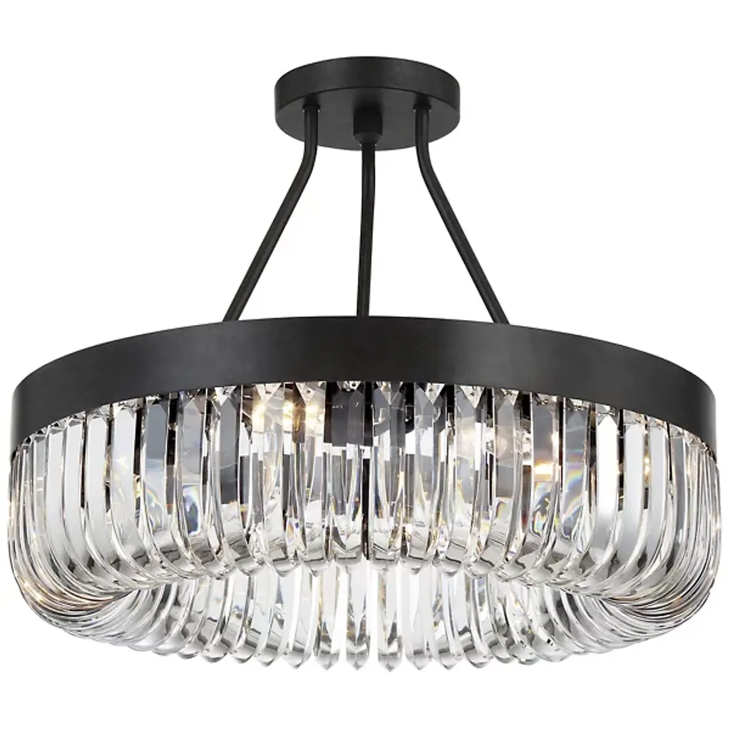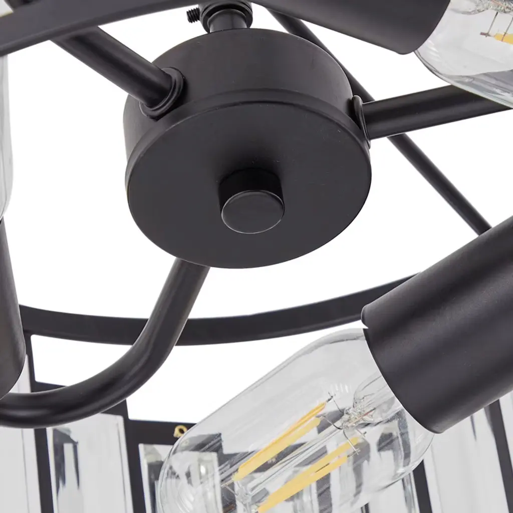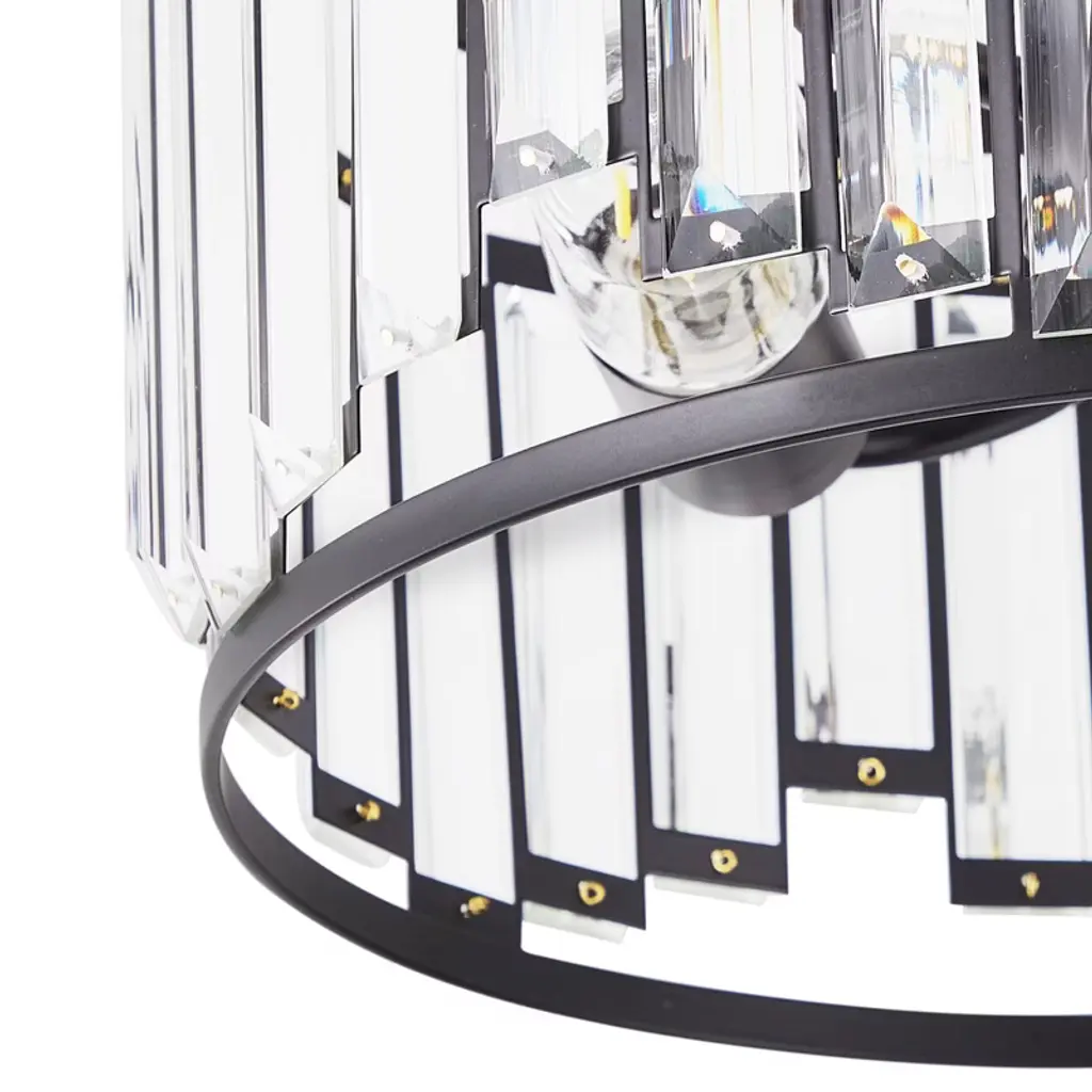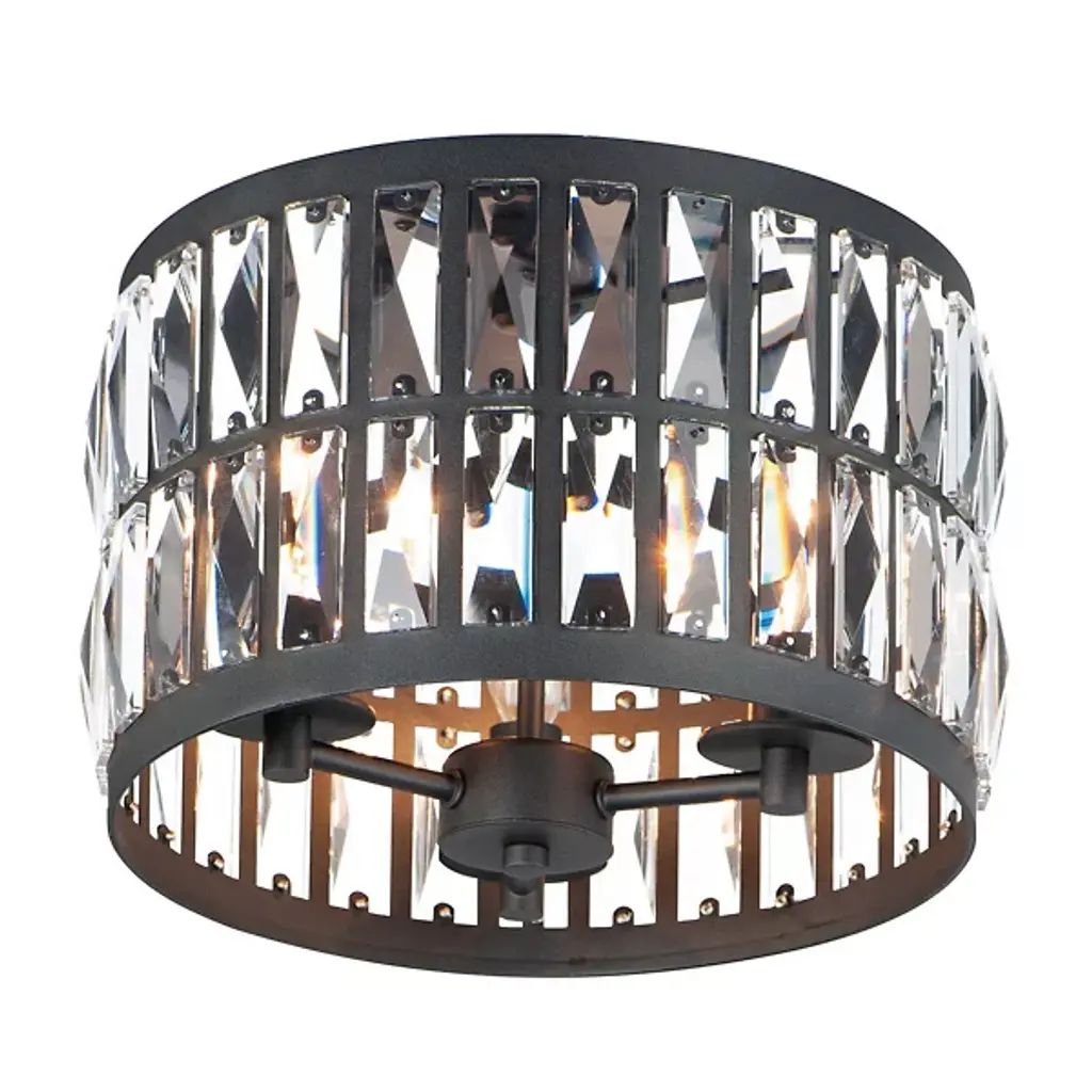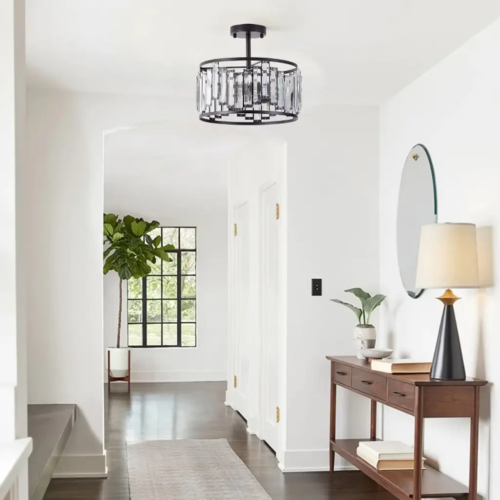 The Dewdrop 3-light crystal semi flush mount ceiling light features a matte black iron frame with sparkling clear glass crystals. Compatible with 3 ¡Á E26 bulbs (max 40W, not included), this ETL-listed fixture ensures safety and style. Easy to install and backed by a 2-year warranty, it's ideal for bedrooms, dining rooms, foyers, and hallways.