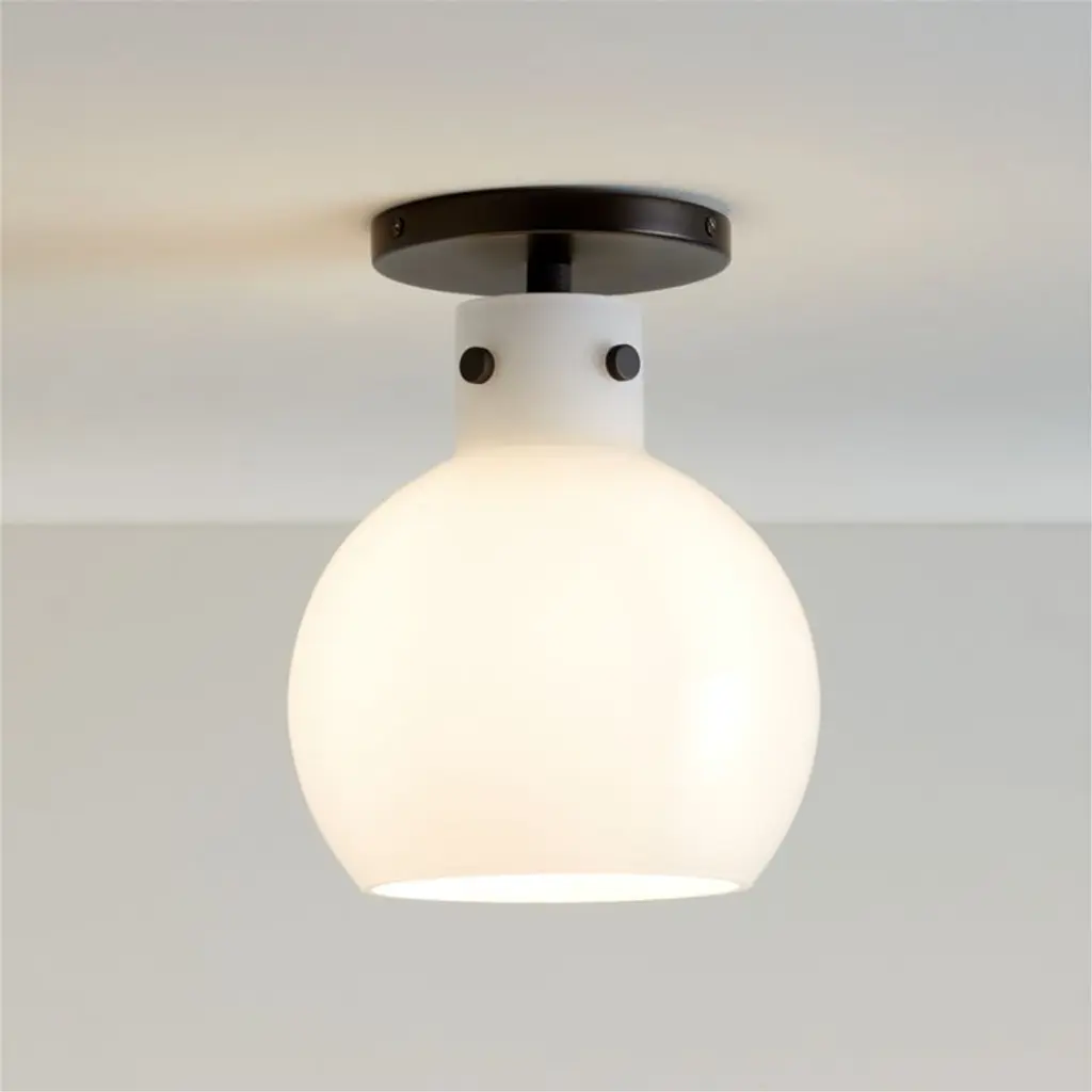 Specifications: Type: Vintage Semi Flush Mount Ceiling LightMaterials: Iron, GlassFinish: Painted Color: Black, GoldNumber of Light Sources: 1 Light Direction: Multi-directional Base: E26 (bulbs not included)Wattage: 180W Voltage: 110V Dimensions: 13.58 in. W x 13.58 in. D x 11.41 in. H Adjustable Length: No Features: Vintage Vintage Design: This 1-Light ceiling light is combined with a black gold finish and a milk-white glass shade, which is simple and elegant without a lack of design. Quality Assurance: High-quality iron and glass craft with painted finish. All products in the factory have to undergo rigorous safety monitoring, to ensure quality and safety. Easy Assembly: There is no need to worry about the installation difficulty, to achieve installation quickly, all installation hardware and installation instructions are included in the package for you. Variety of Choices: Provide the most abundant categories of lighting products, to meet your needs. Our main products include LED Chandeliers, Pendant lights, Flush mount lights, Crystal Ceiling lamps, and island lights. Scope of Application: Provide lighting or decoration for any space. Can be widely used in bathrooms, hallways, living rooms, bedrooms, farmhouses, etc.