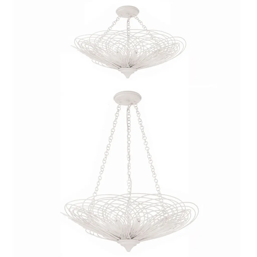 Derived from the delicate beauty of flower petals, the new Doral Chandelier is a stunning work of art. Its gracefully swirling metal rings create a symmetrical design that elevates any room, reminiscent of a blossoming flower when viewed from below. This fixture's warm finish and organic form effortlessly harmonize with contemporary interiors, infusing a sense of elegance and nature-inspired allure into your living space.