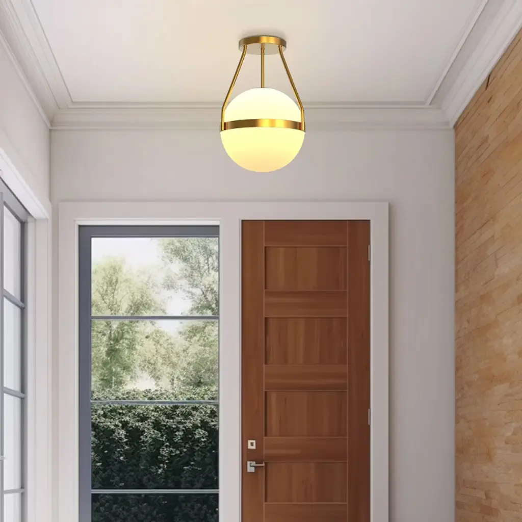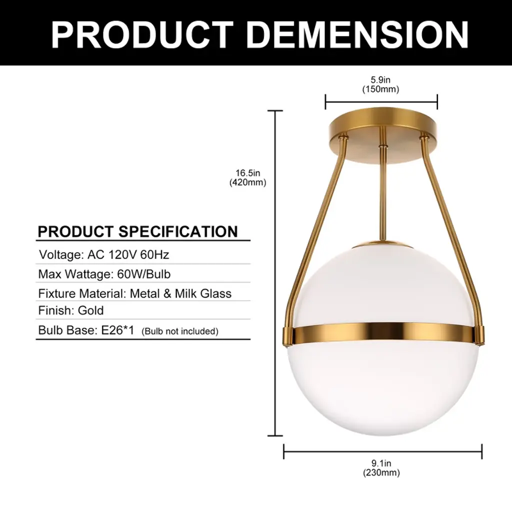 Doresshop 10 In.1-light Gold Semi-flush Mount With White Frosted Glass Shade And No Bulb Included (1-pack)