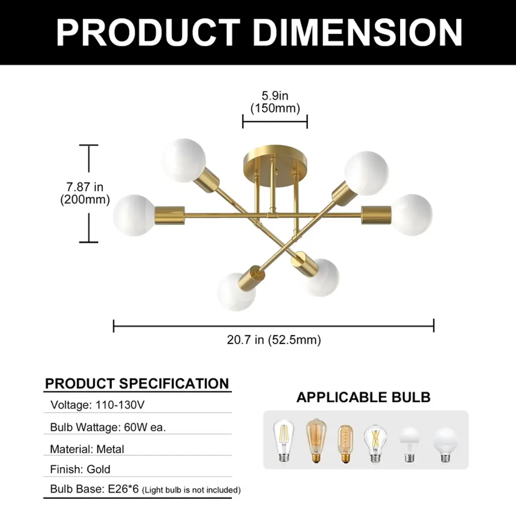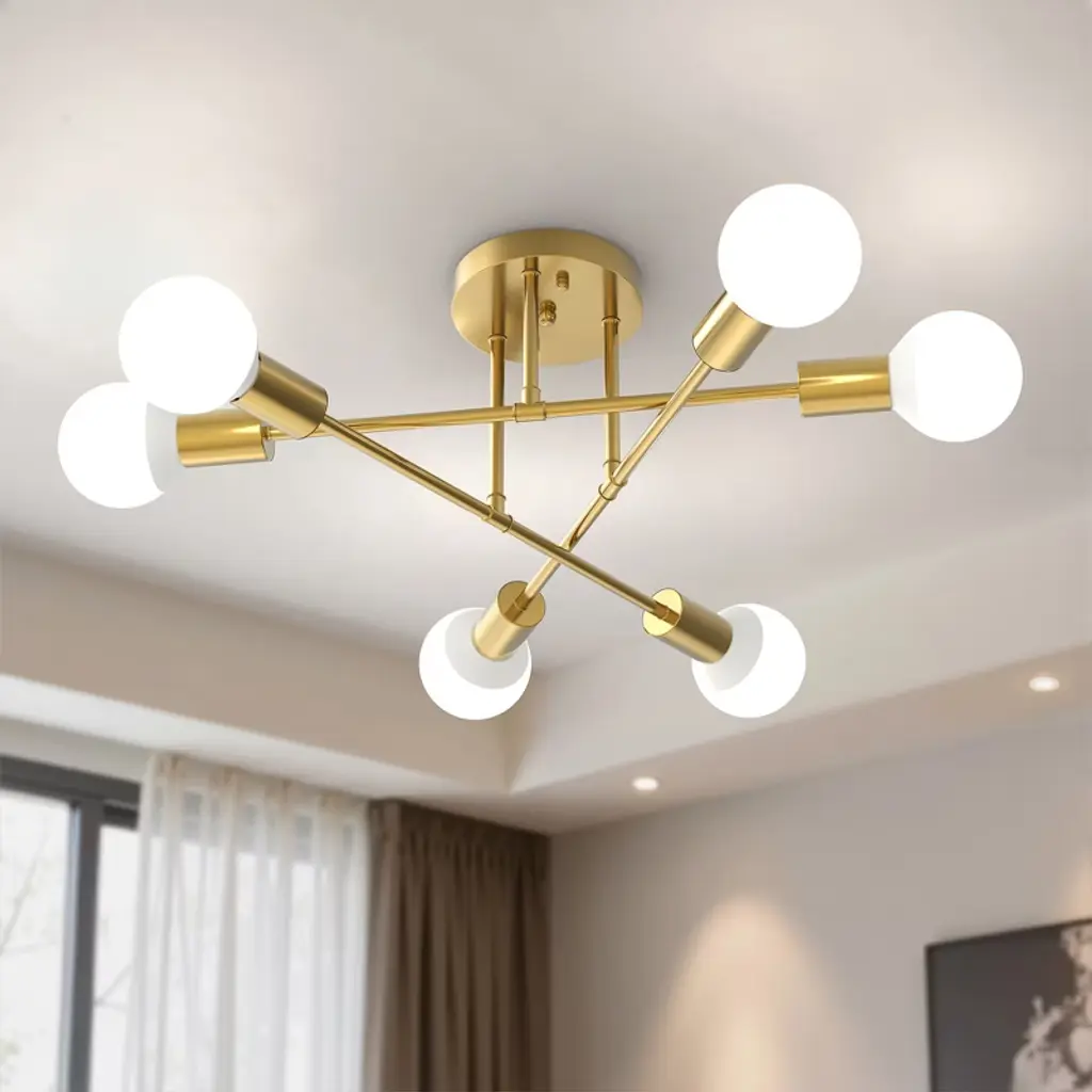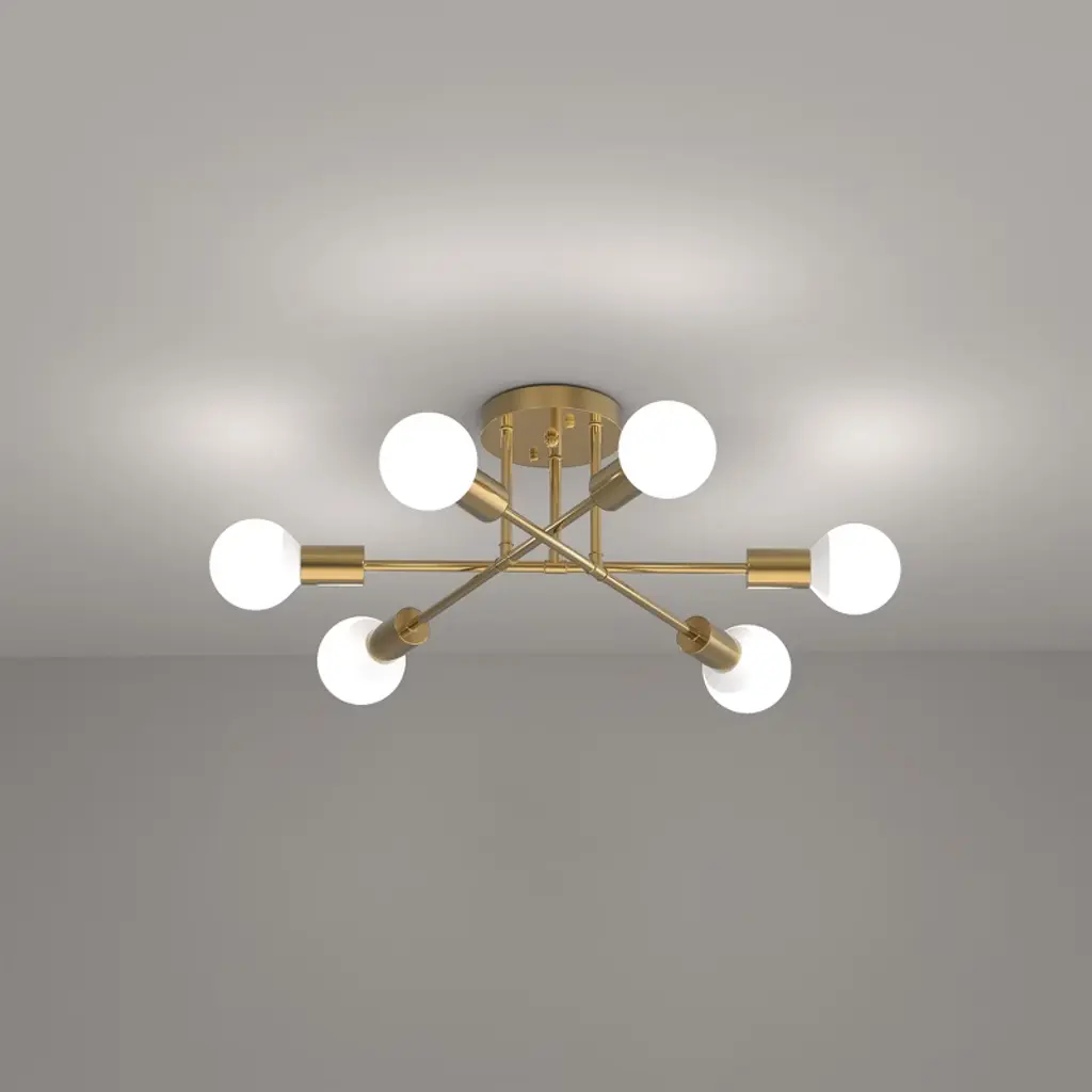 Doresshop 6-head Copper Semi Flush Mount Ceiling Light, Branch-style Design, E26 Sockets, Non-integrated Fixture