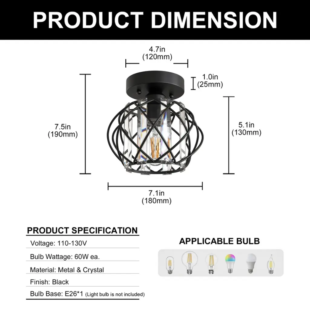 Bring sparkle to every step with this compact crystal ceiling light-where glamour meets everyday practicality. The dazzling crystal accents and semi flush design make it perfect for hallways, closets, or entryways that need a glow-up. Chic, compact, and brilliant-this is the easiest way to add elegance without the footprint of a full chandelier.