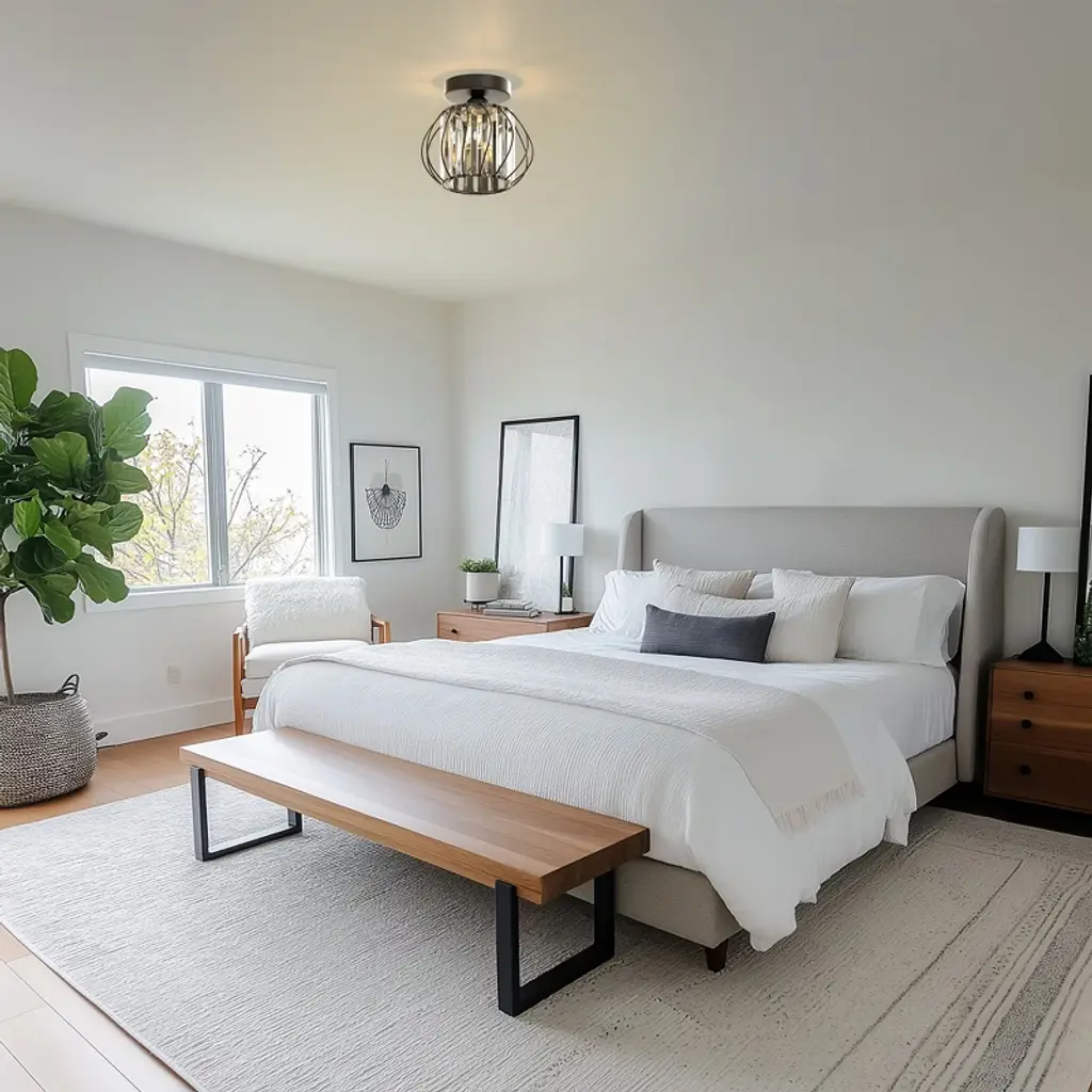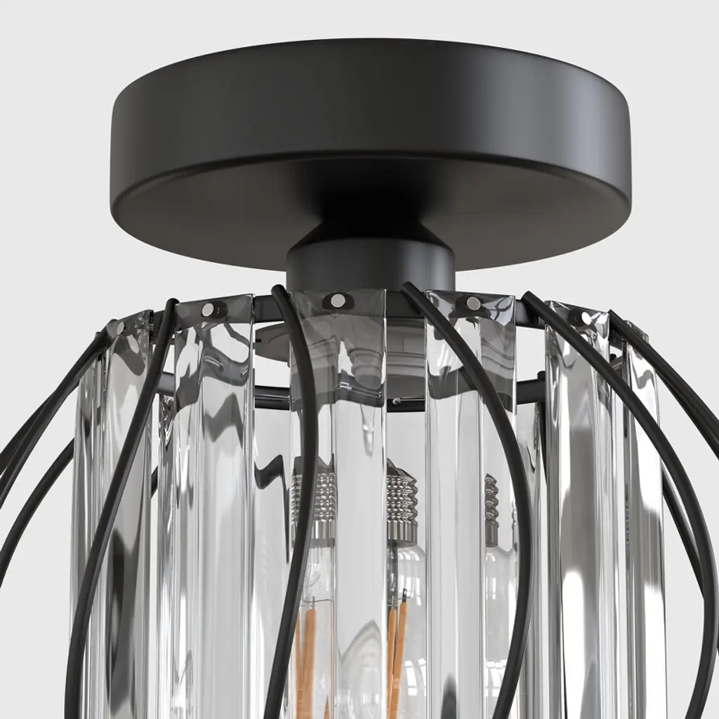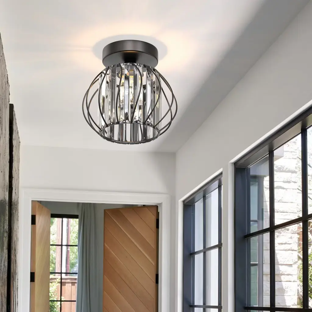 Modern 1-light semi-flush ceiling fixture with black metal frame. Compatible with E26 bulbs (not included). Ideal for bedrooms, hallways, kitchens, and entryways. Modern and minimalist design adds a stylish touch to any space. Easy to install and durable.