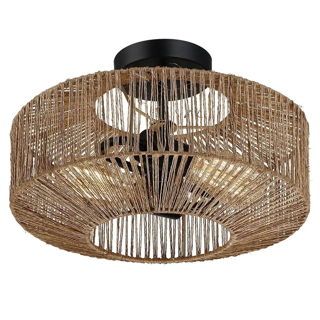 Dorn 2-Light Bohemian Jute Rope Semi-Flush Mount - W14"x H10" - 14 In. W - 14 In. W
