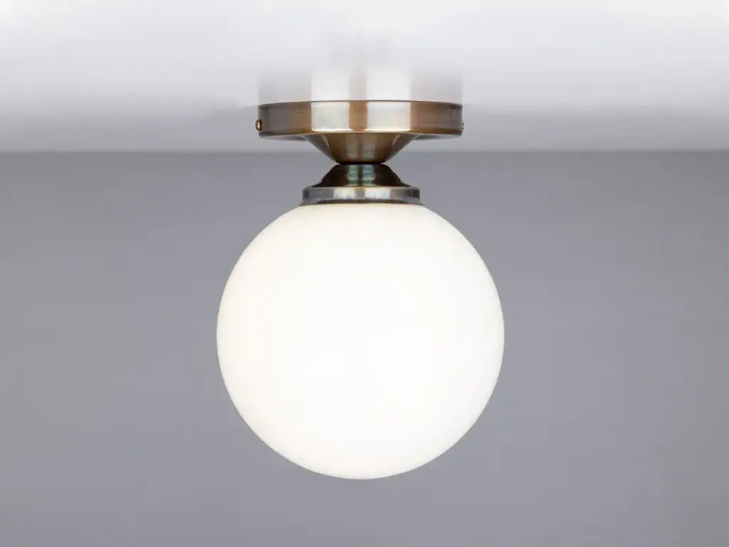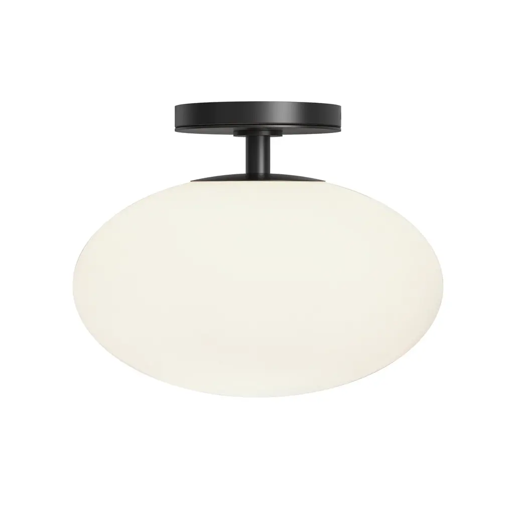 The Dots Semi-Flushmount from MM Lampadari is a playful series of globe glazed with warm, inviting light. Creator Matteo Zorzenoni imagines a high-style luminaire with balance and simplicity in mind. Zorzenoni’s pieces reflect his studies on materials. This semi-flushmount’s compact metal canopy works beautifully in a nook while inviting a grouped composition over open ceilings. The canopy sports a spherical accent that sets off the piece’s dot-inspired charm. The blown glass shade underneath conceals the lamping for minimal glare. The shade’s uniform curves help dish out an intimate light that glazes its surroundings.
