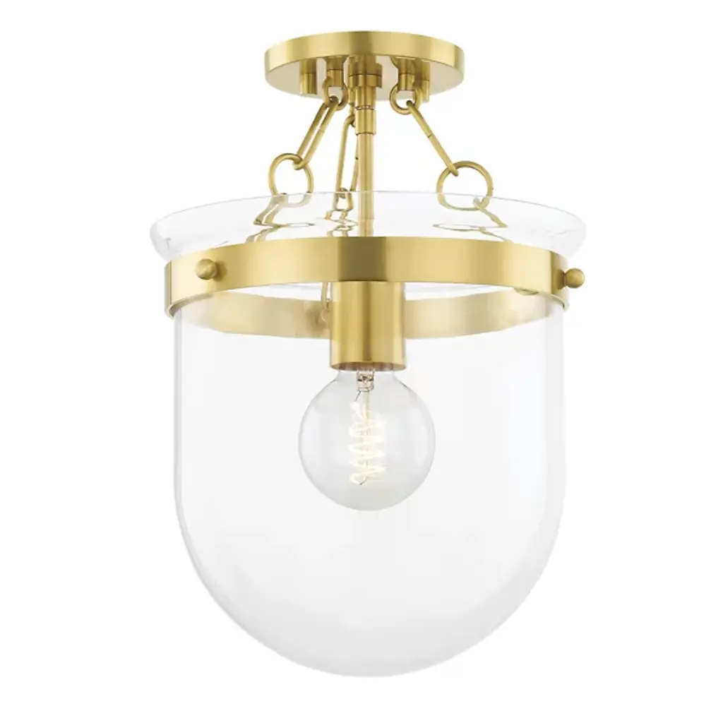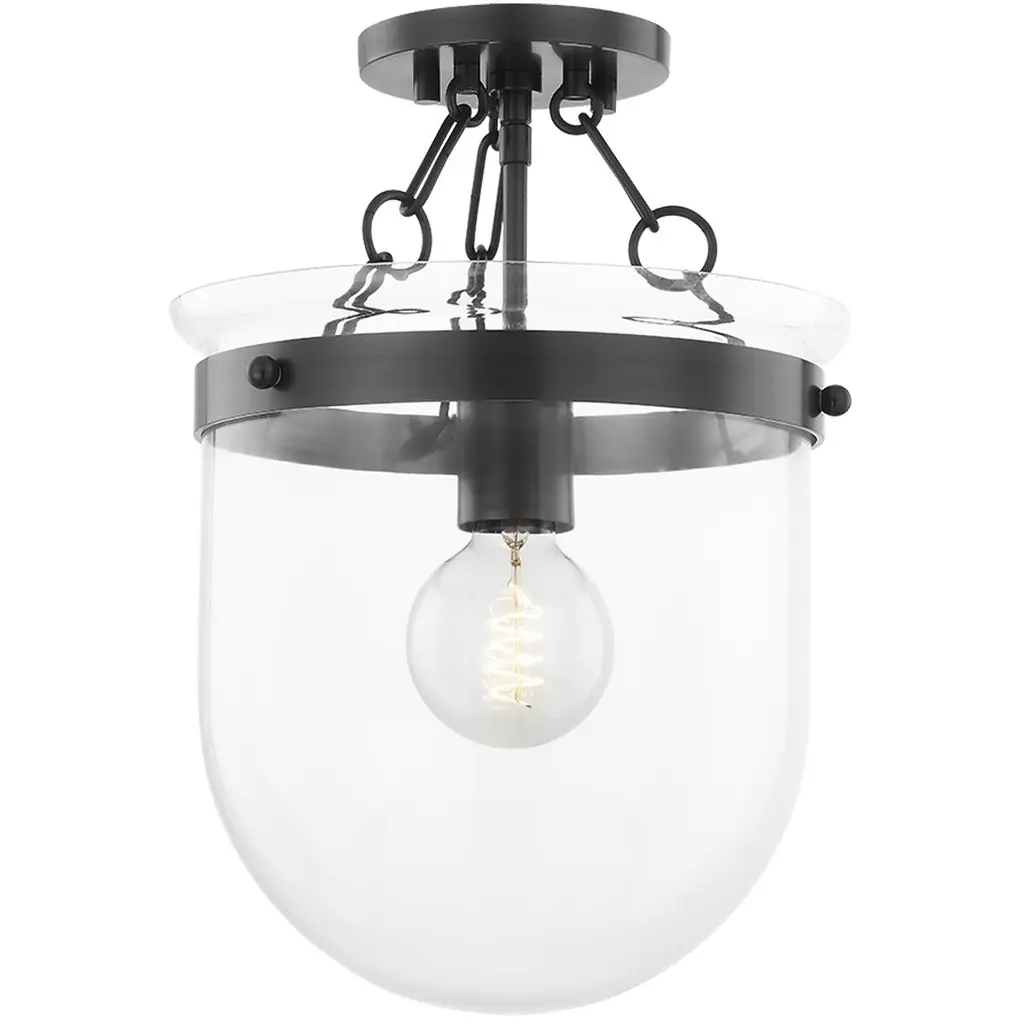 The Dunbar Semi Flushmount from Mitzi offers timeless charm and introduces a fresh traditional aesthetic to the classic bell jar design. With its straightforward metalwork and clear glass construction, this product effortlessly exudes elegance while maintaining versatility. Whether styled individually or in multiples, it achieves a clean and chic look that complements various interior settings. Designed by Ariel Okin, Dunbar showcases a perfect balance of sophistication and usability, making it a versatile and stylish choice for any space