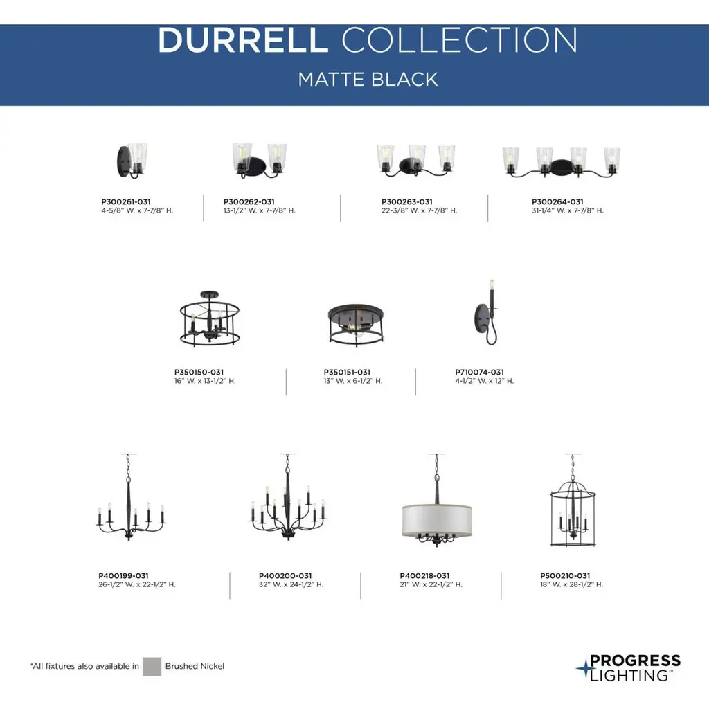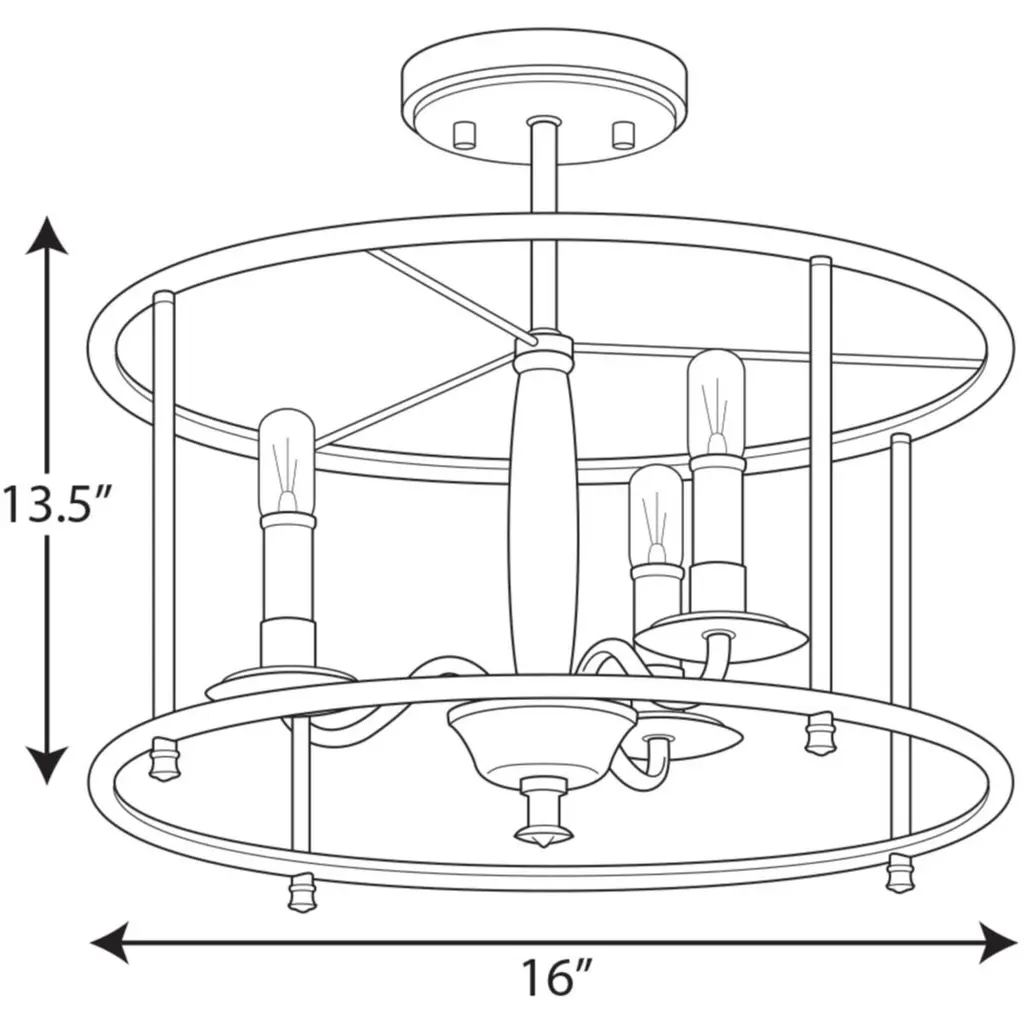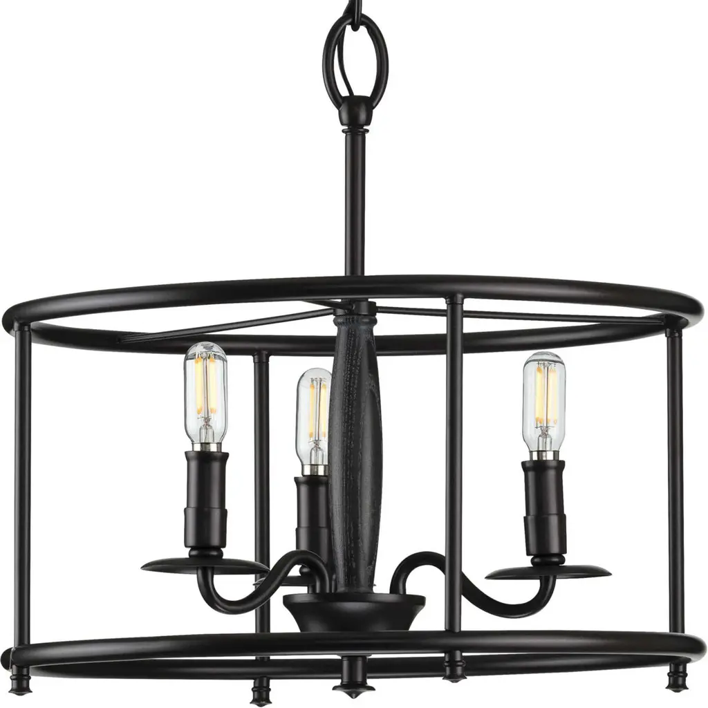 This versatile semi-flush convertible from the Durrell Collection will easily find a home in a variety of settings in need of generous illumination. A round open-cage frame coated in a farmhouse-style black finish highlights the light fixture’s rustic demeanor. Inside the frame nestle light bases reminiscent of vintage candlesticks on gently curving metal arms. A wooden column at the ceiling light’s center is coated in a cerused black finish and creates a mixed-element aesthetic.