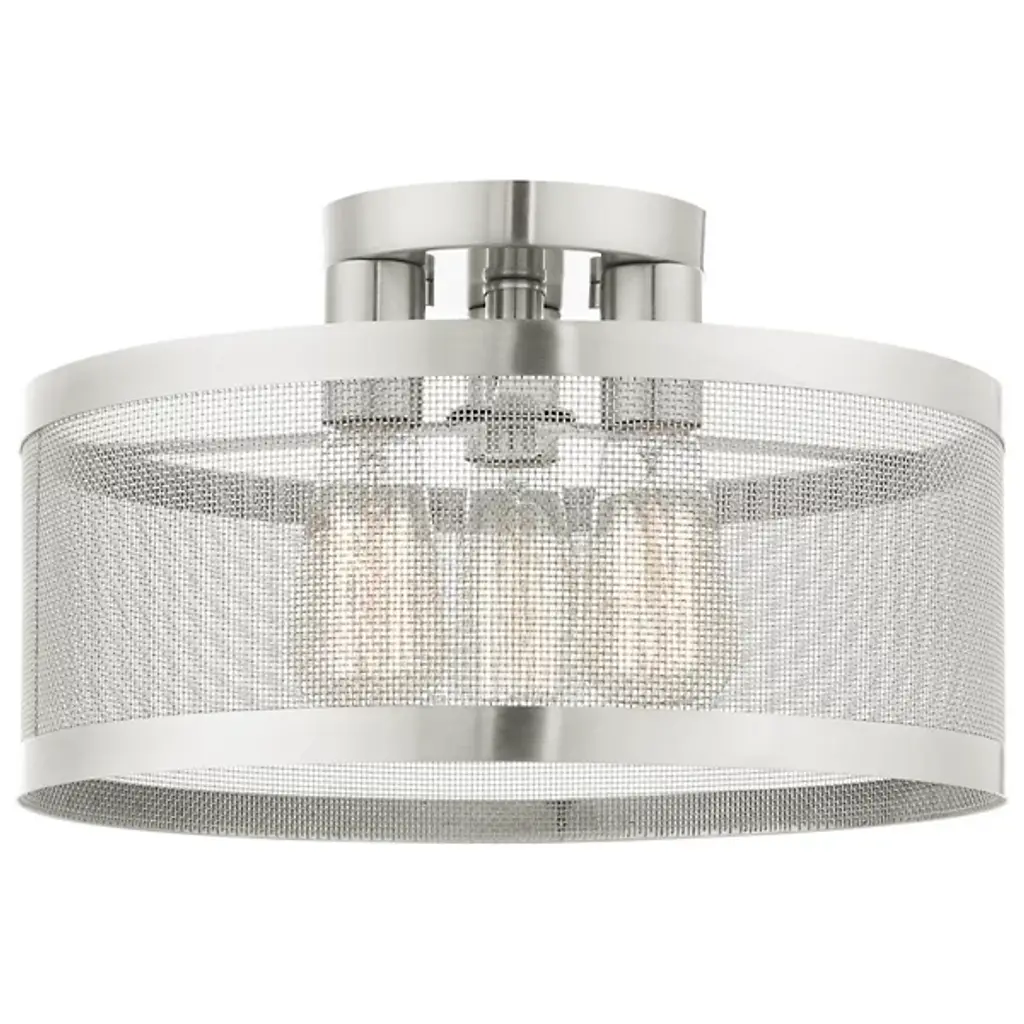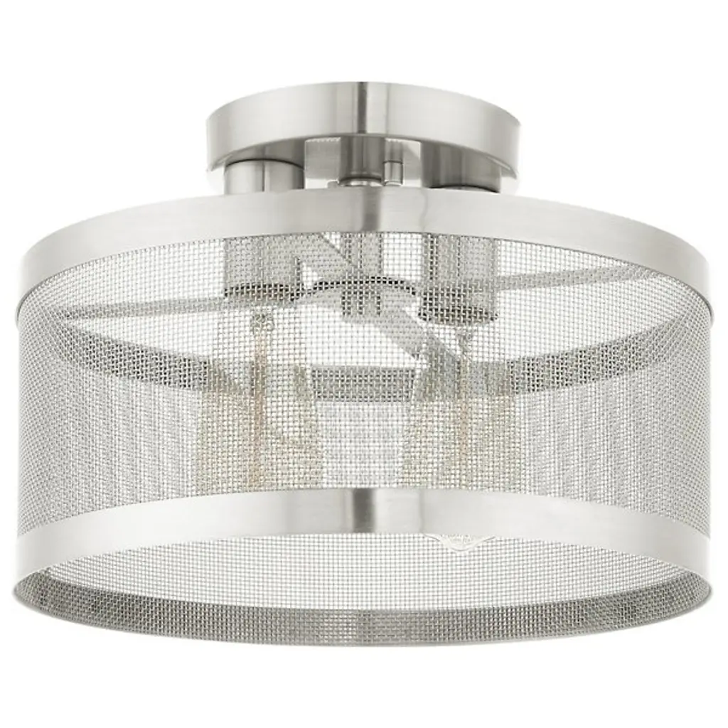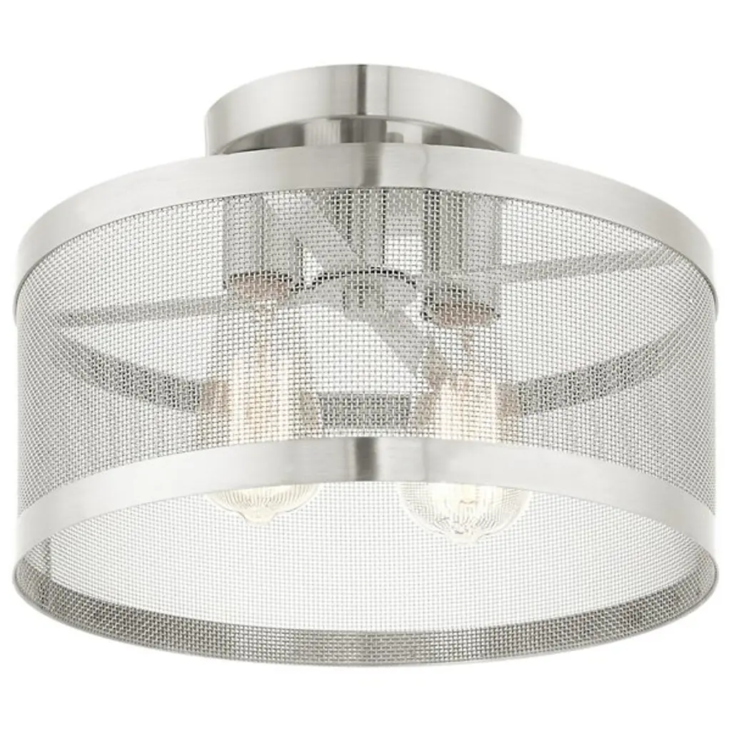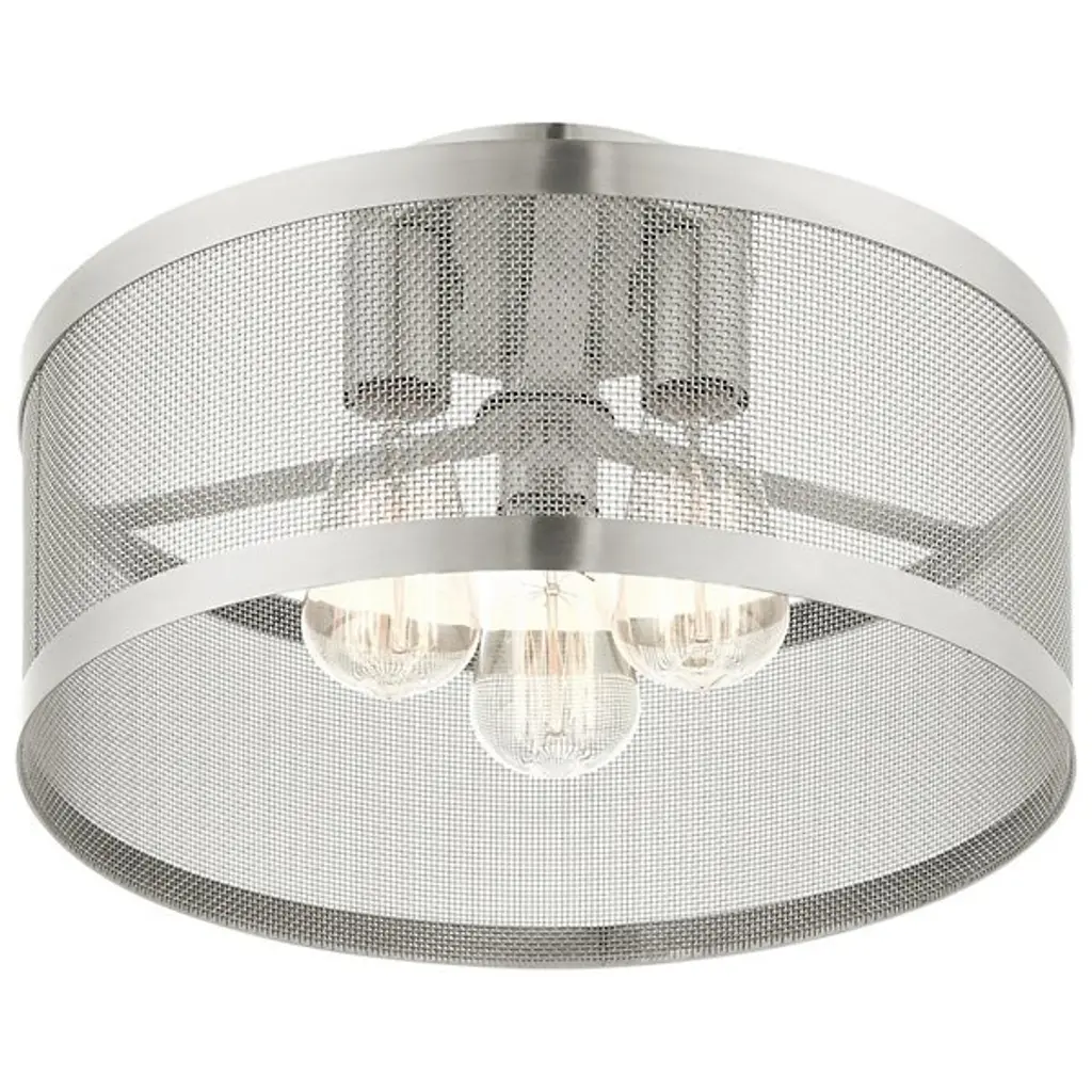 Go back to basics with the open, elegant structure of the Echo Semi-Flushmount from Alder & Ore. Ideal for low-ceilinged spaces, this robust steel fixture relies on a low-profile disc canopy to secure itself and a downward-facing single socket at its center. A broad drum shade of steel mesh with thin, vertical ring accents at its upper and lower ends extends down around the fixture’s damp-listed lamping, gentling bright light into a mix of direct downlight paired with a warm layer of light that blazes out through the sides.