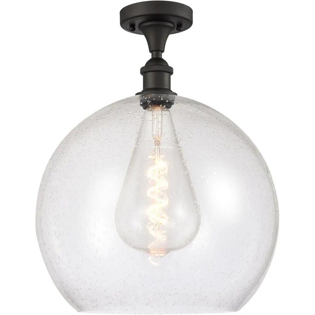 Athens - 1 Light 14" Semi-Flush Mount - Incandescent Bulb - Matte Black Finish - Seedy Shade