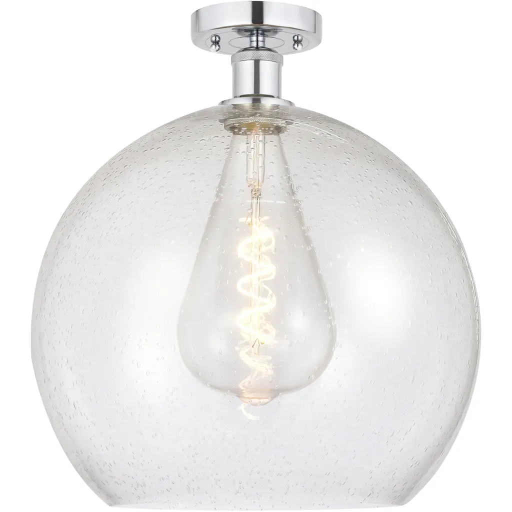 Edison Athens 1 Light 14 Inch Matte Black Semi-Flush Mount Ceiling Light In Seedy Glass