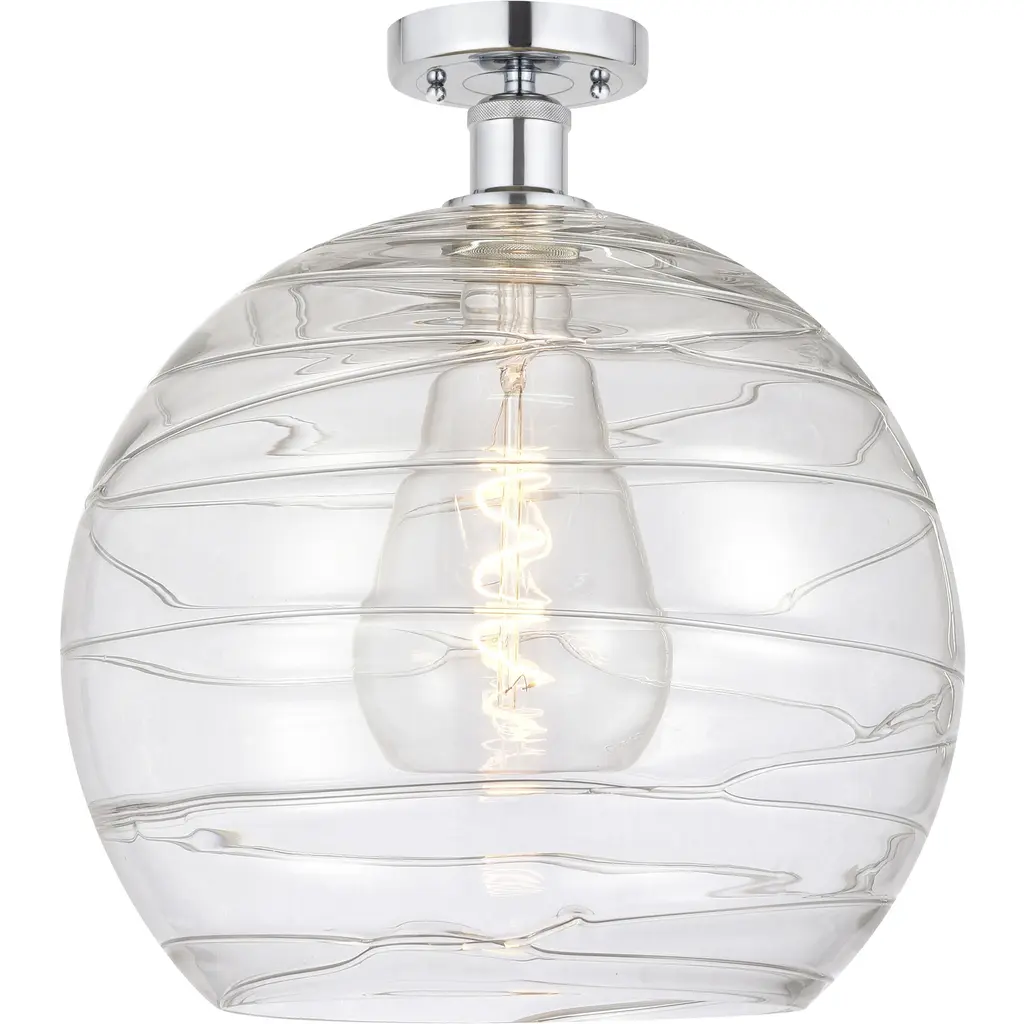 Athens Deco Swirl - 1 Light 13" Semi-Flush Mount - Incandescent Bulb - Matte Black Finish - Clear Deco Swirl Shade