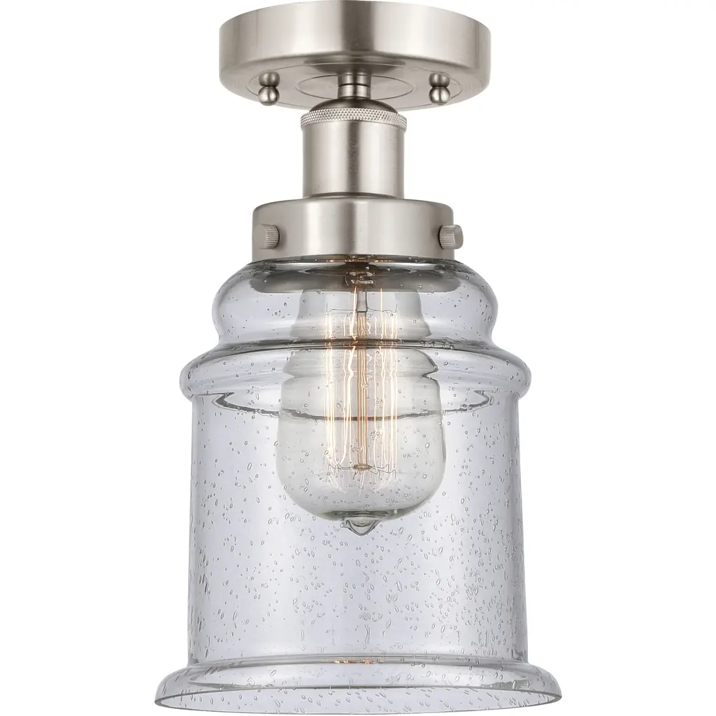 Edison Canton 1 Light 6 Inch Oil Rubbed Bronze Semi-Flush Mount Ceiling Light In Seedy Glass