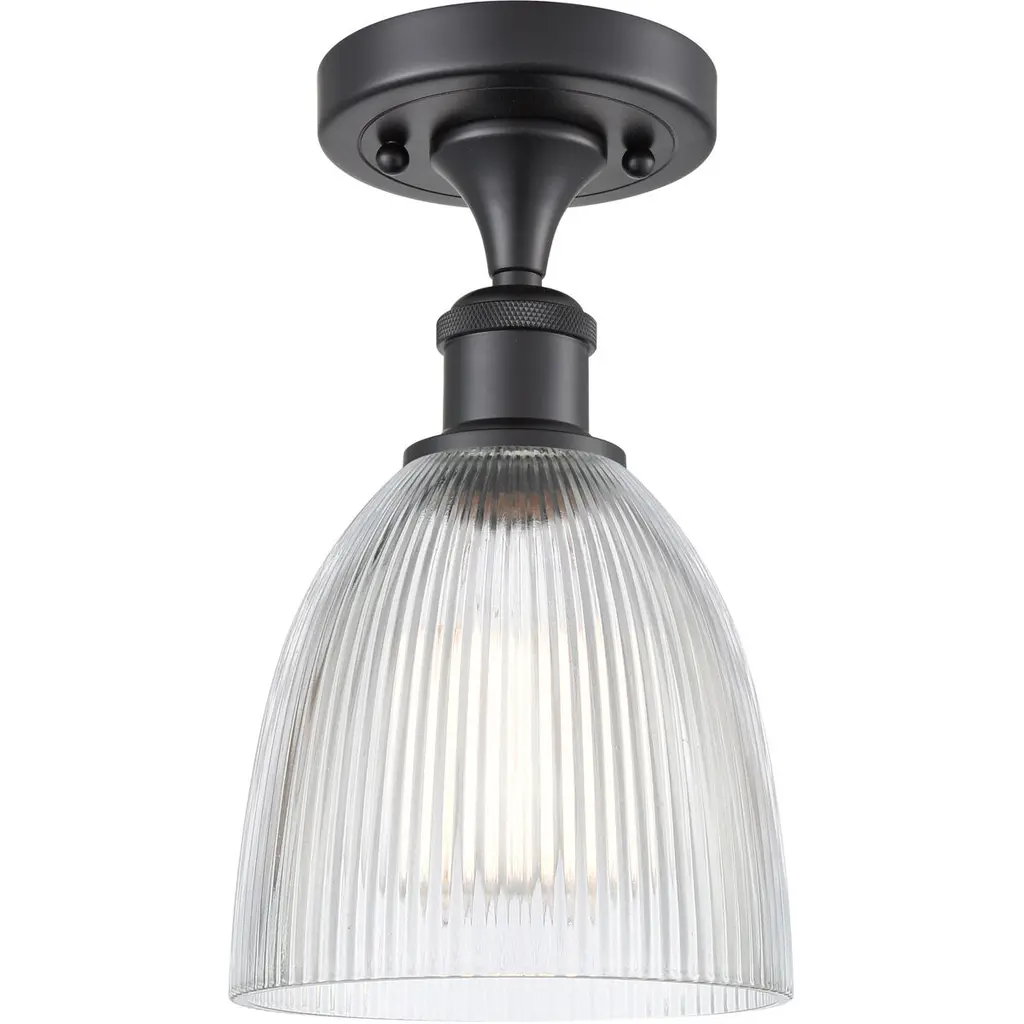 Edison Castile 1 Light 6 Inch Matte Black Semi-Flush Mount Ceiling Light In Clear Glass
