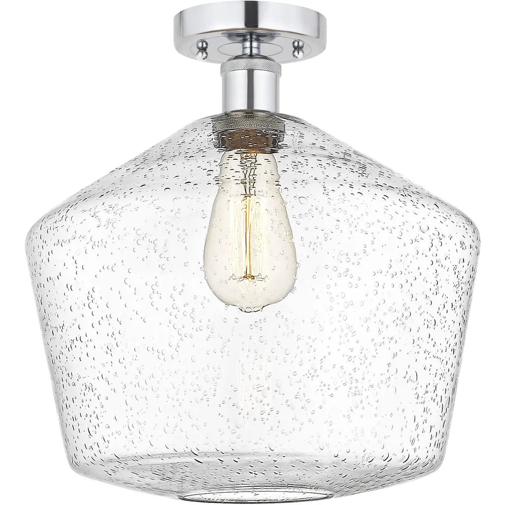 Edison Cindyrella 1 Light 12 Inch Matte Black Semi-Flush Mount Ceiling Light In Seedy Glass