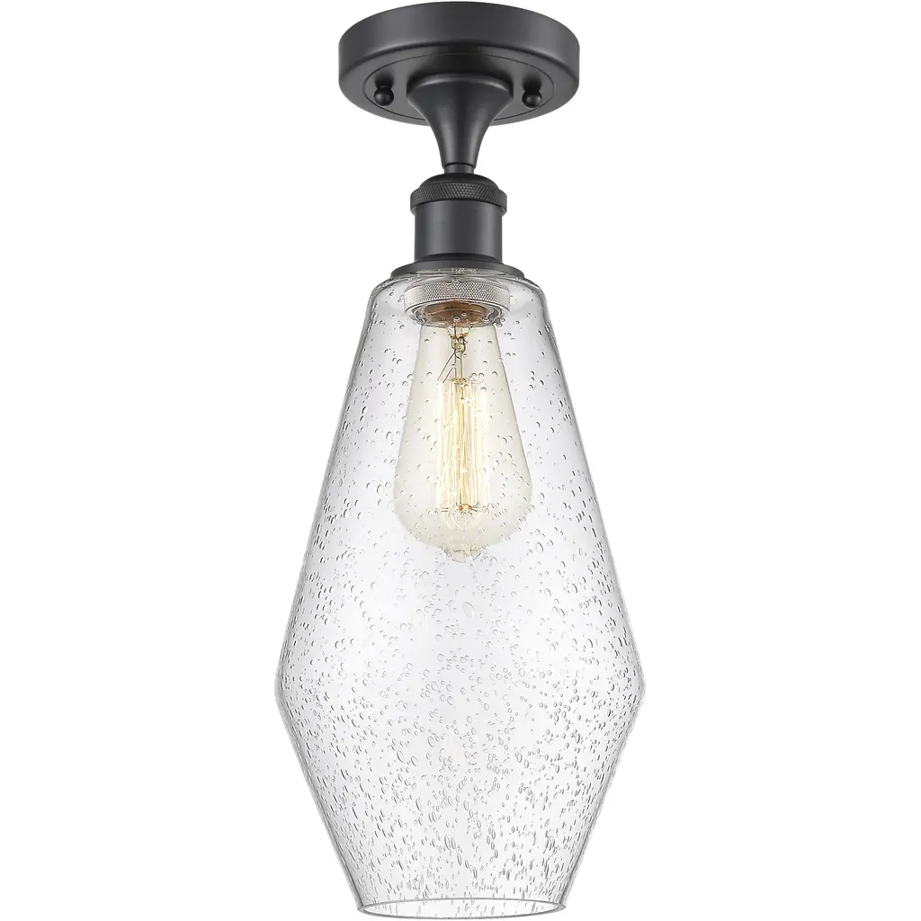 Edison Cindyrella 1 Light 7 Inch Matte Black Semi-Flush Mount Ceiling Light In Clear Glass