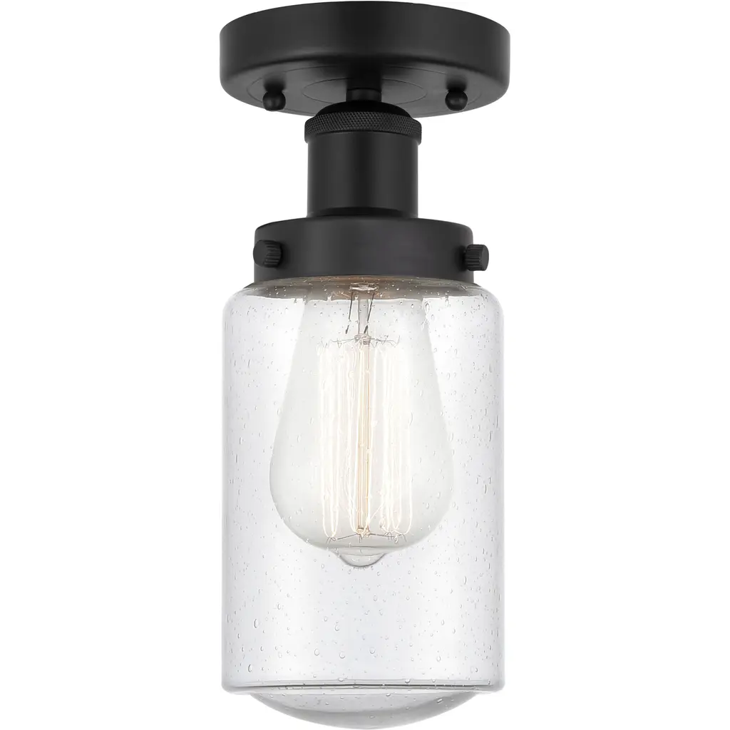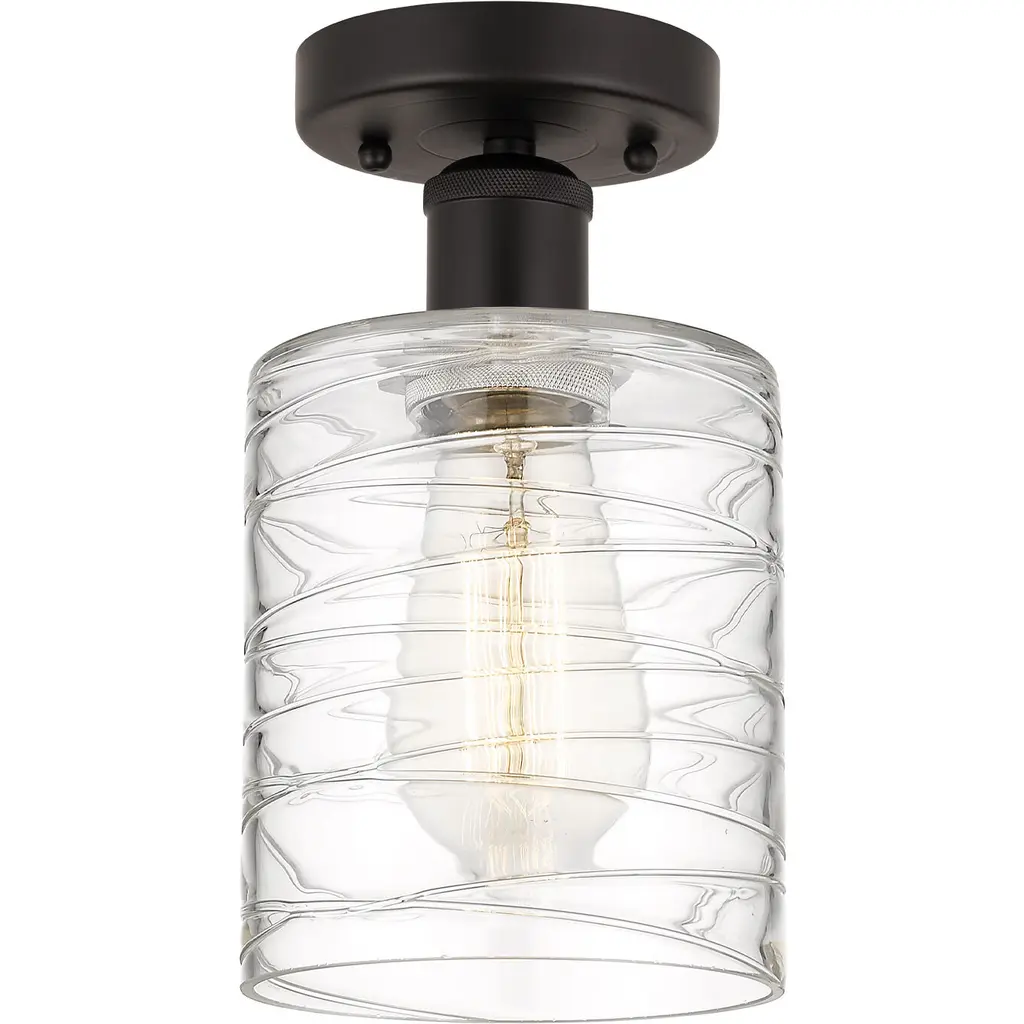 Edison Cobbleskill 1 Light 5 Inch Matte Black Semi-Flush Mount Ceiling Light In Deco Swirl Glass