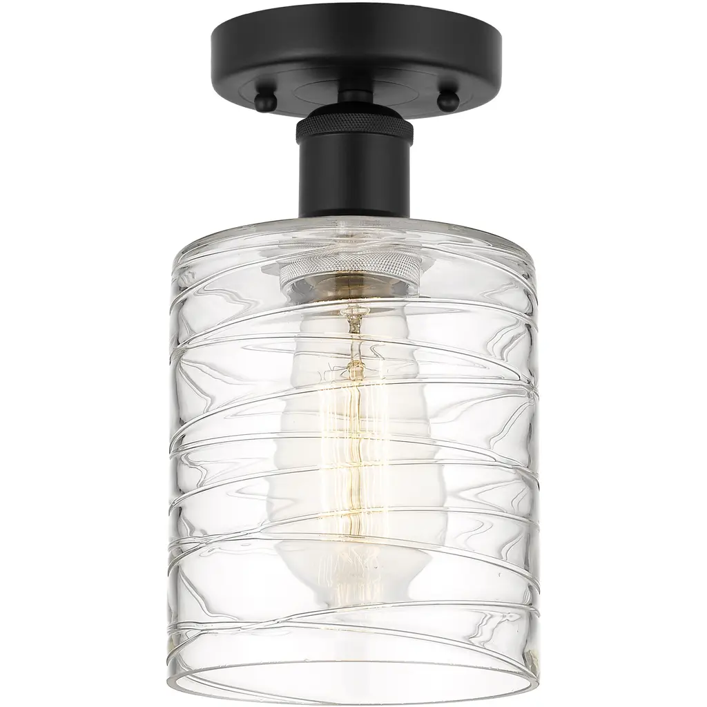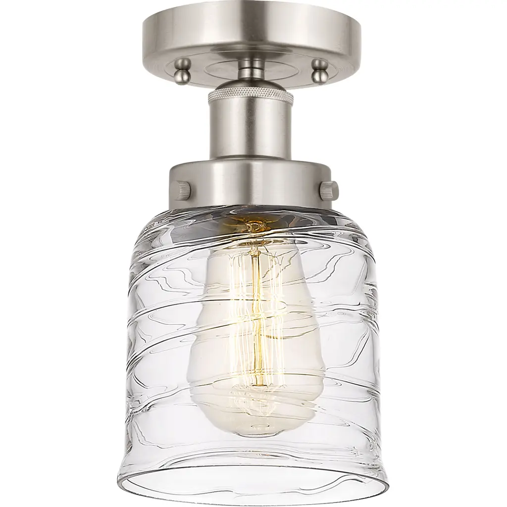 Edison Cobbleskill 1 Light 5 Inch Polished Chrome Semi-Flush Mount Ceiling Light In Deco Swirl Glass