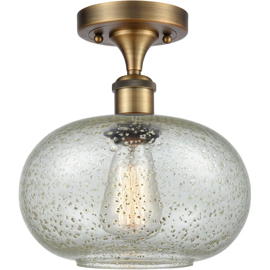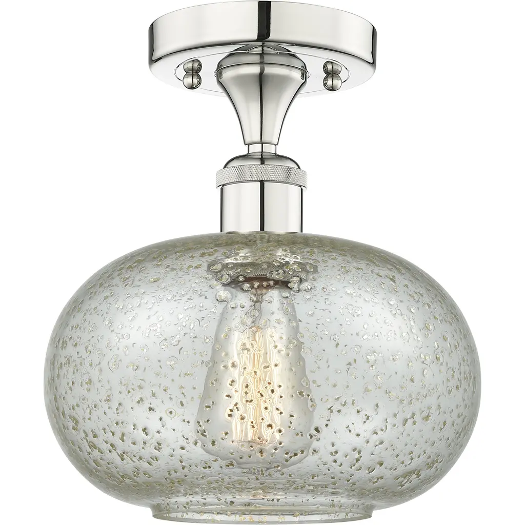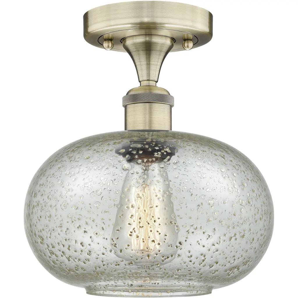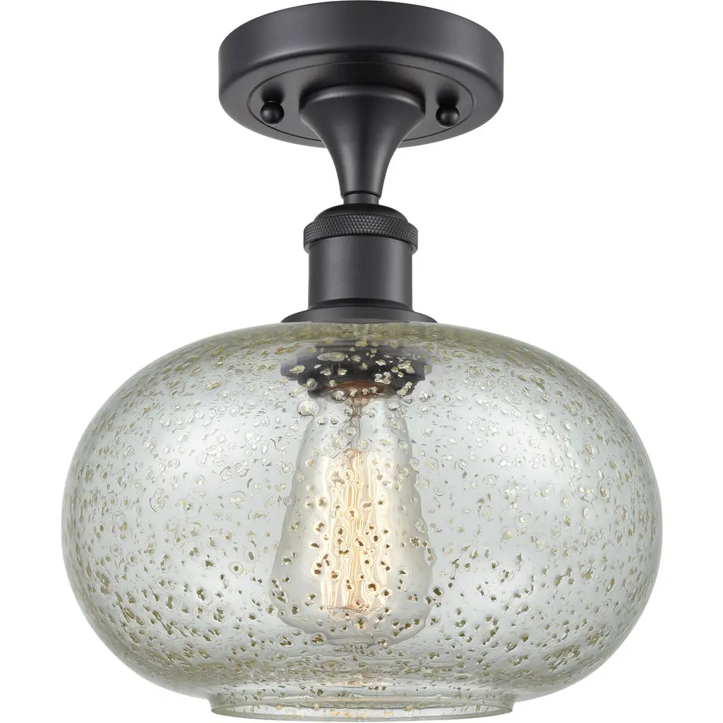 Edison Gorham 1 Light 9.5 Inch Matte Black Semi-Flush Mount Ceiling Light In Mica Glass