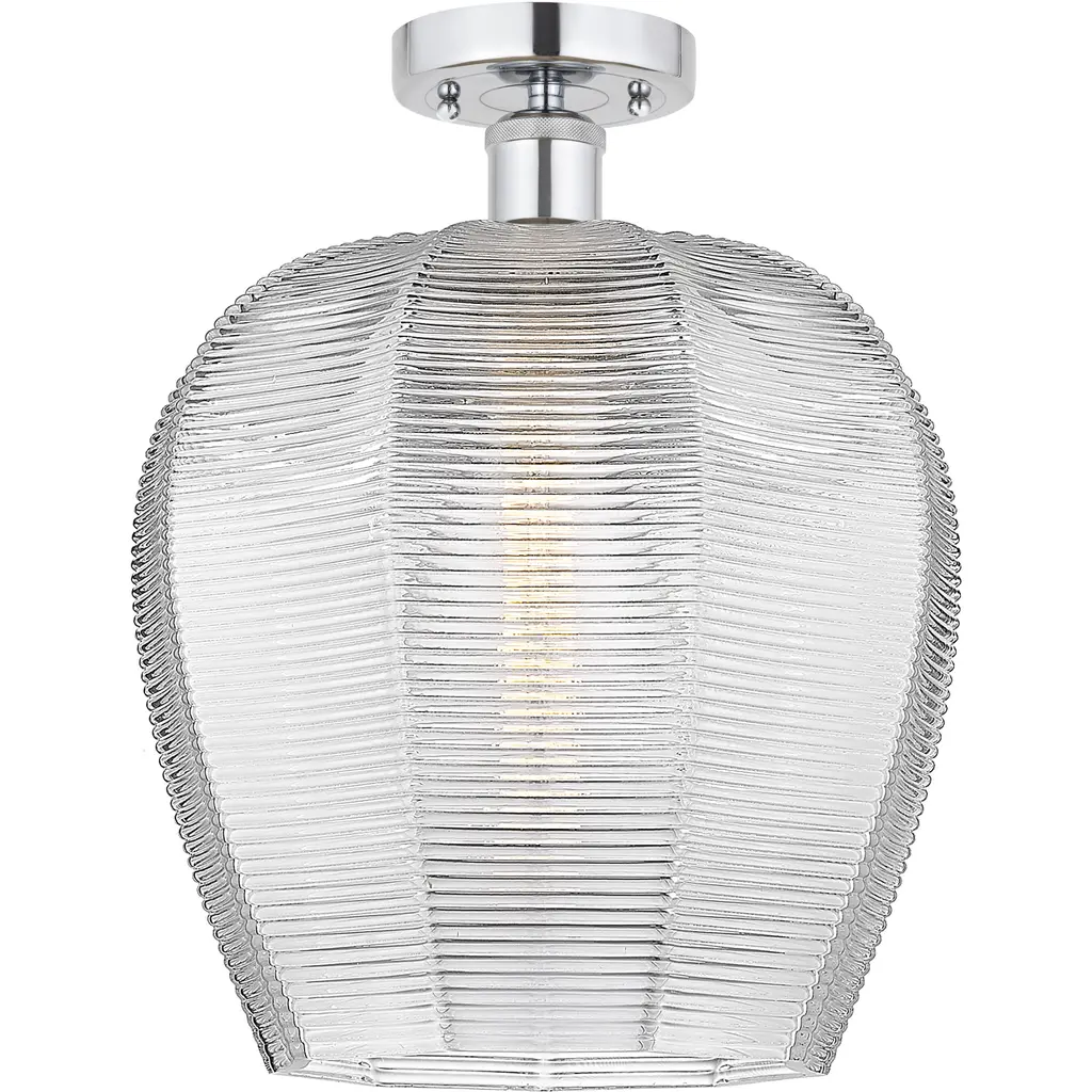 Edison Norfolk 1 Light 12 Inch Matte Black Semi-Flush Mount Ceiling Light In Clear Glass